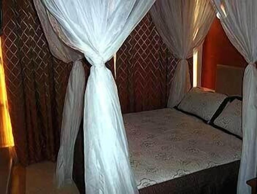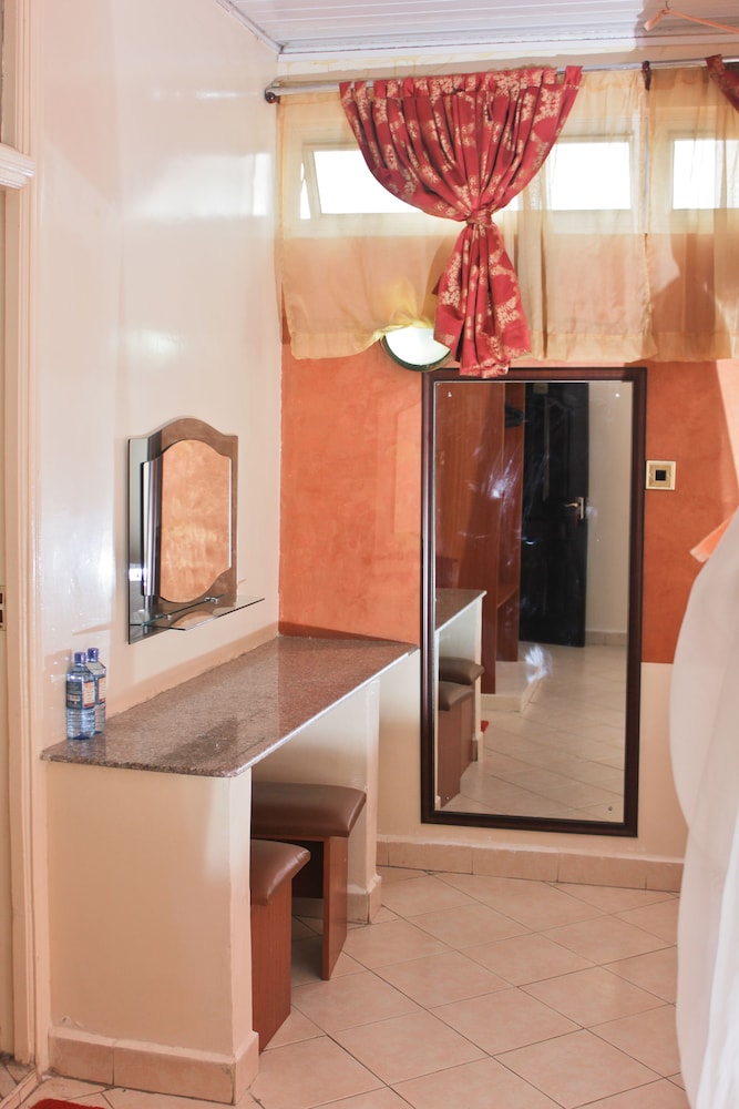 Devant le portail clos nous avons failli faire demi tour tellement le quartier n'est pas accueillant... Une fois rentrés, un accueil standard, puis nous montons dans la chambre : de nouveau envi de faire demi tour, rien n'est vraiment propre, de toute petites fenêtre en hauteur ne nous laisse même pas voir dehors, il n'y a pas d'eau et les WC contiennent encore la grosse commission du précédent occupant. Malgré ça on s'est résigné (1ère nuit étape) mais avons quitté l'hôtel des le levé le lendemain, où nous nous apercevons qu'il s'agit d'un hôtel de passe ! Seul point positif, hôtel situé sur la route proche l'aéroport et à destination du parc d'aberdare.