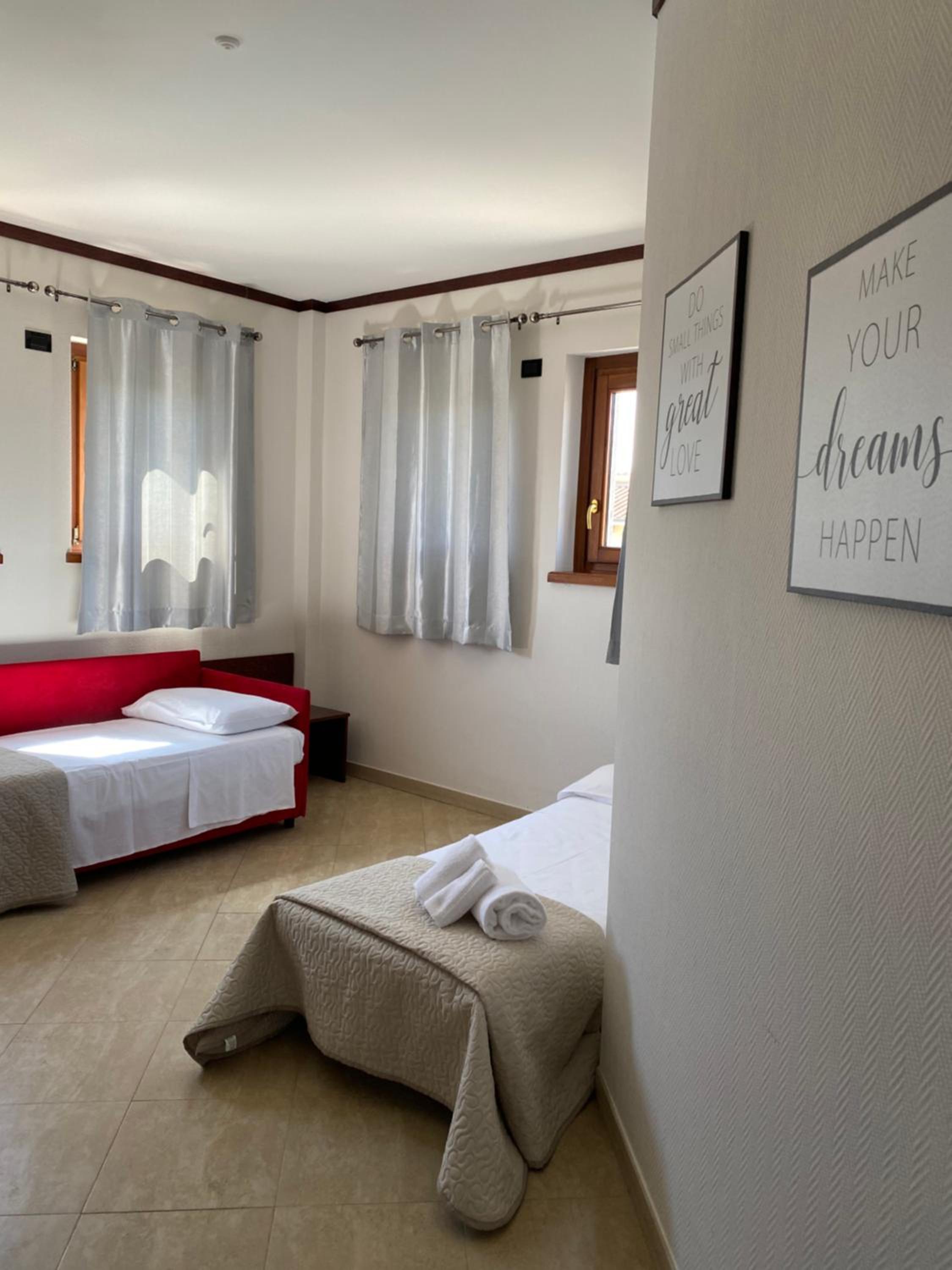 The spacious and air-conditioned rooms at Imperatore Adriano are equipped with flat-screen TVs, free Wi-Fi, and tiled floors, ensuring a comfortable and convenient accommodation for all guests.