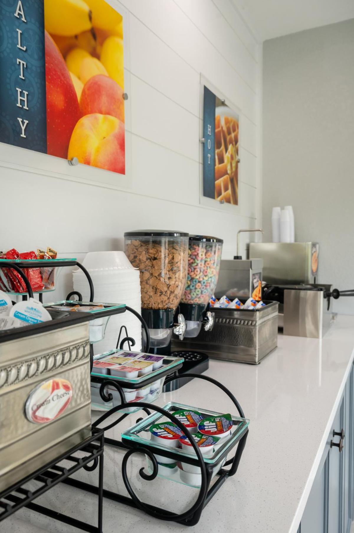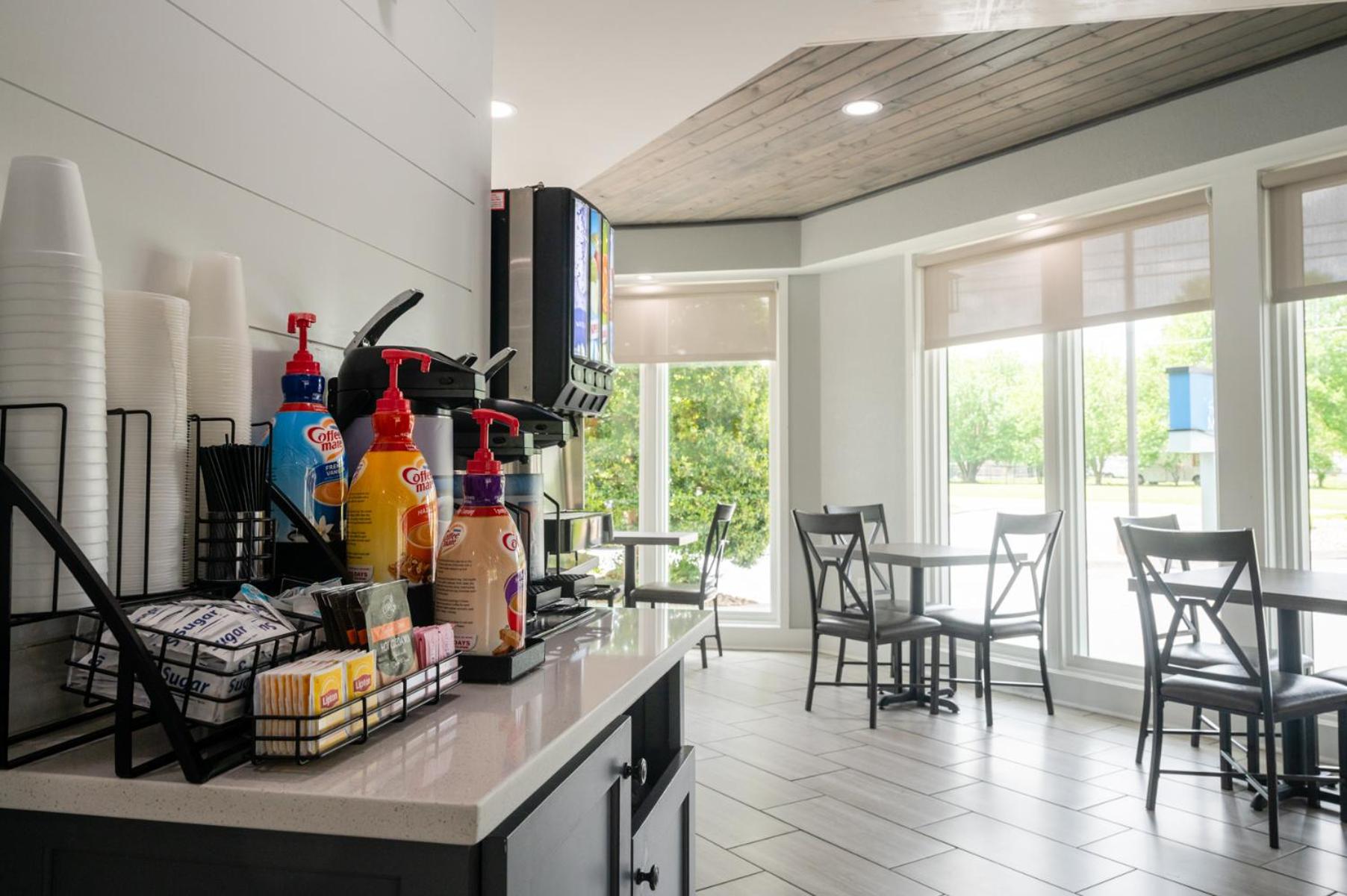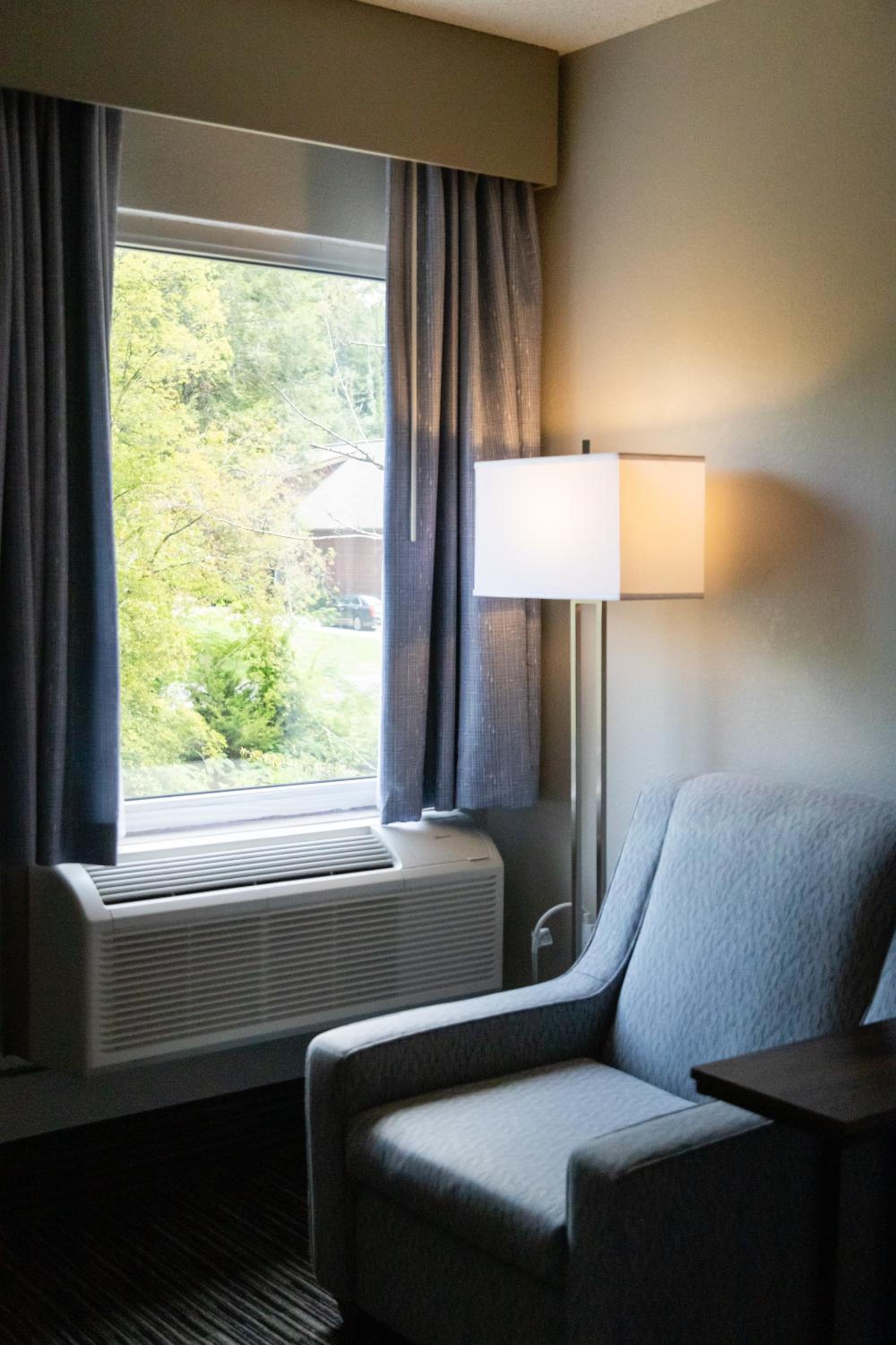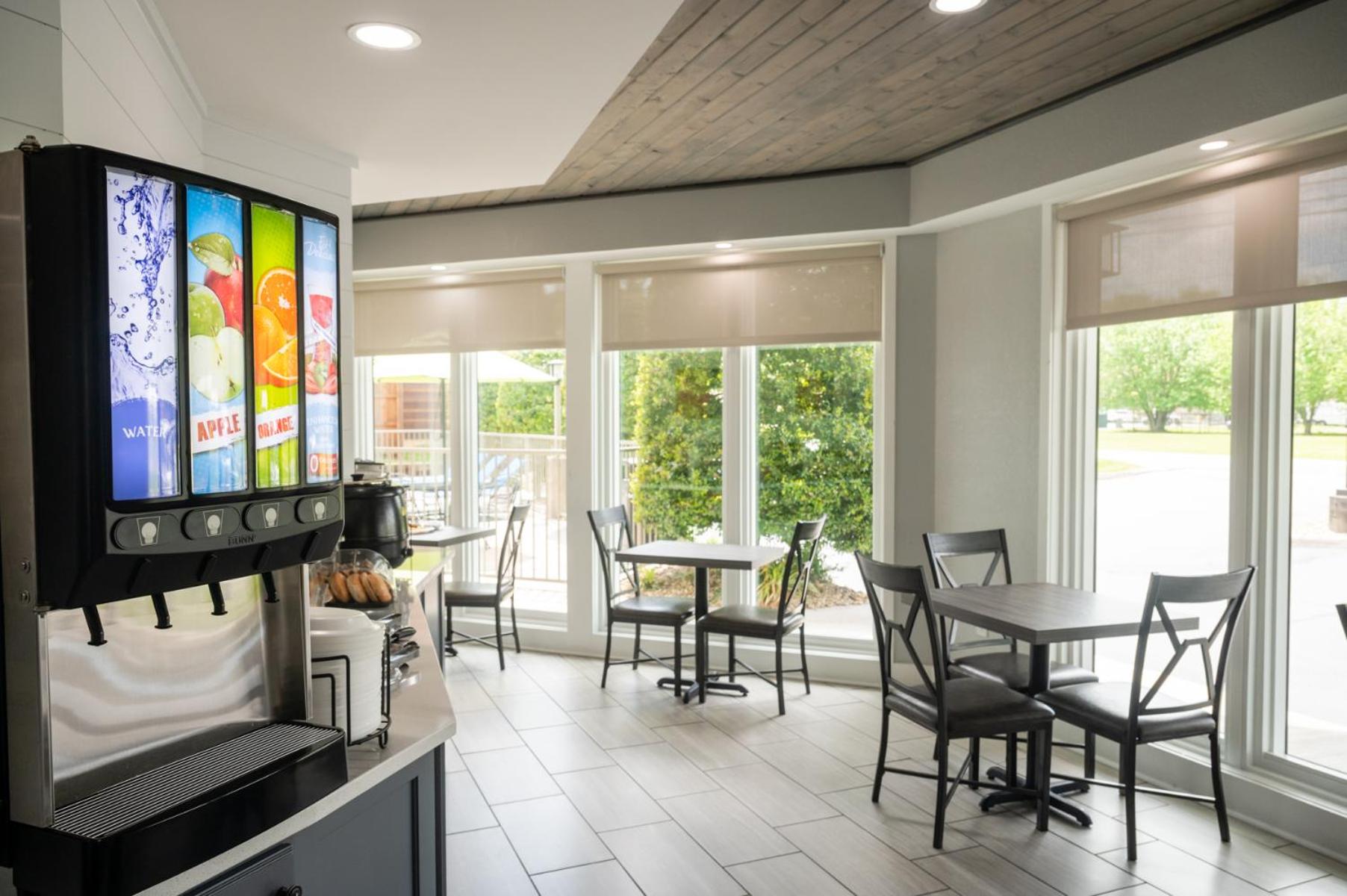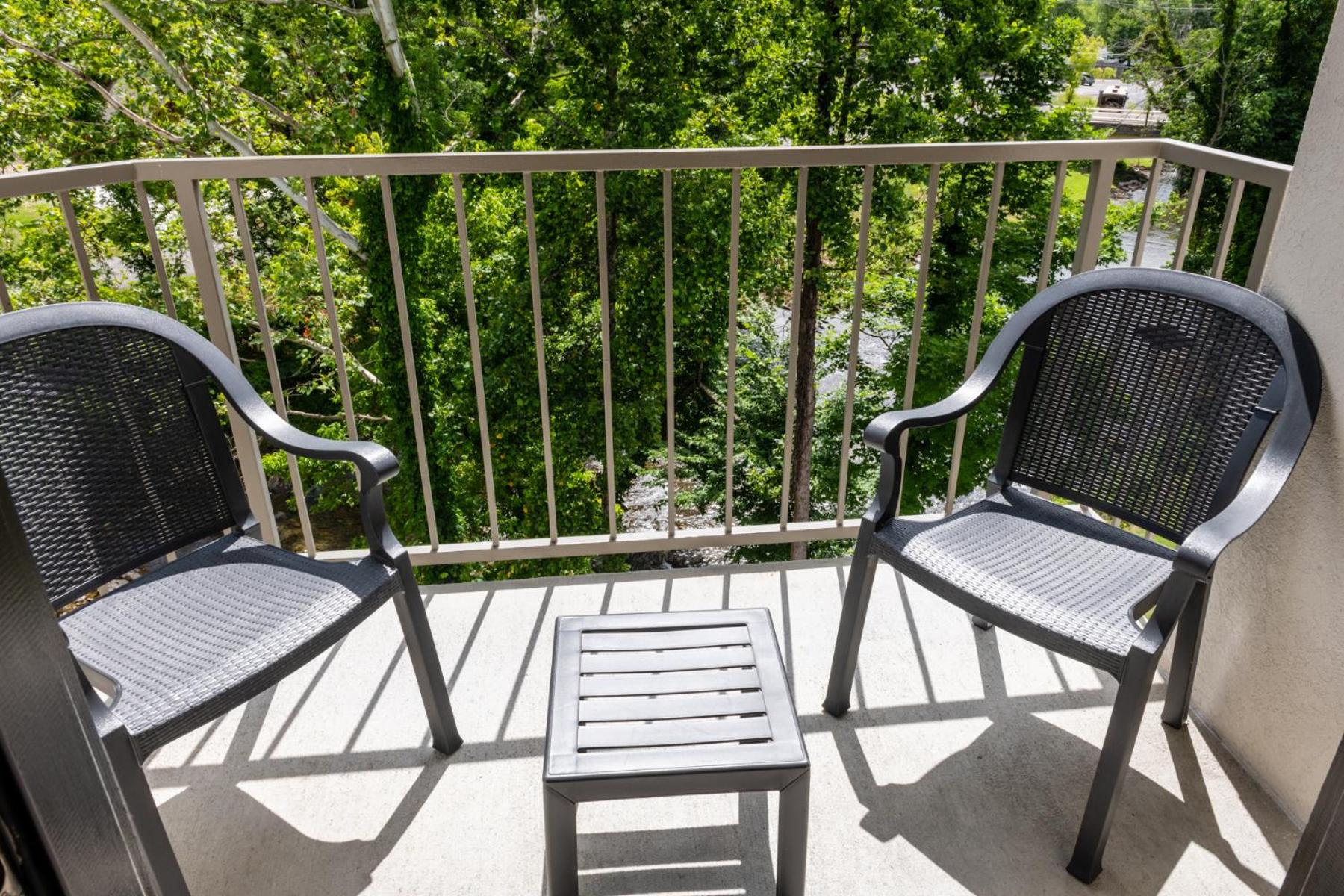 The room was just renovated! The shower was brand new and the floors were new and very clean. Loved having the fireplace in the bedroom ands balcony overlooking the river. The room was very good size and the fact that the second vanity was outside of the bathroom was a plus. The staff was very friendly and the hot breakfast was good - Scrabbled eggs with onion and peppers, bacon cheese grits, biscuits & gravy, sausage, waffles and a good muffin selection. The price was great for all of the amenities.