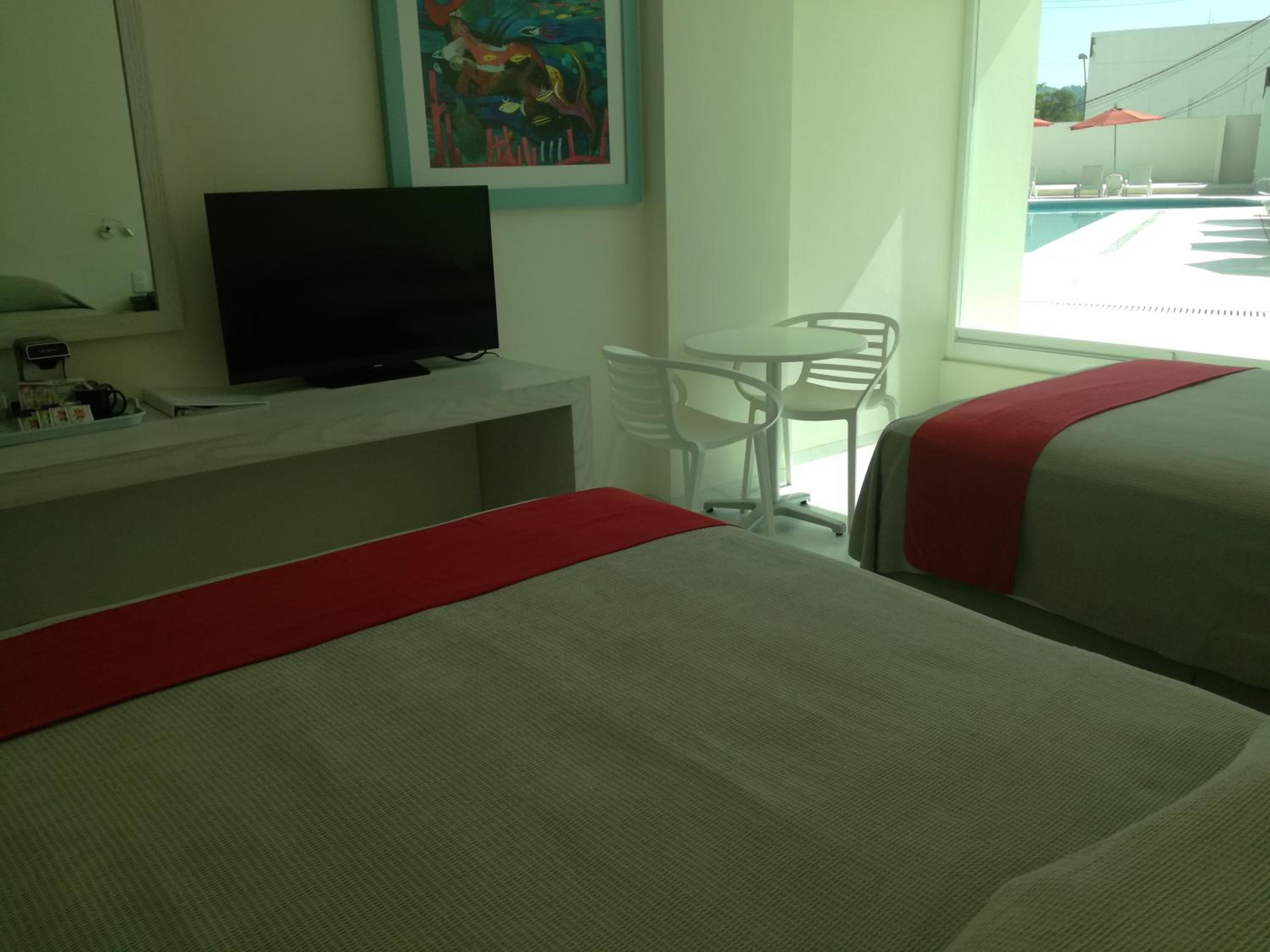 Agradable, accesible, tiene tiendas y restaurantes cerca, alberca bien cuidada, solo que las toallas ya están muy deshilachadas, no está habilitado el comedor, al lado se pone un bazar que tiene mucho ruido, por lo demás bien.