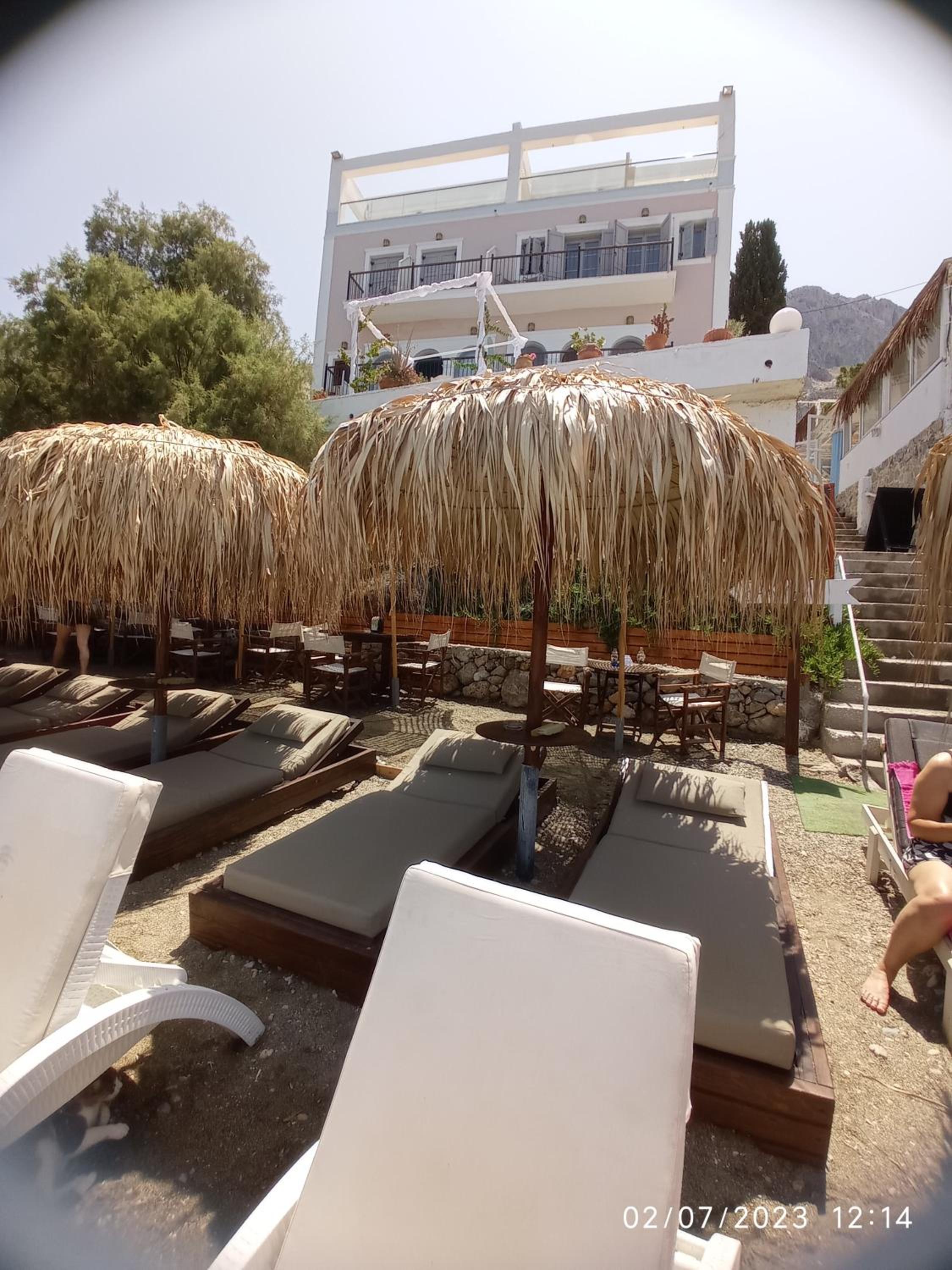 We booked the sea view room. The view was just spectacular, bed super comfortable. Hotel location is excellent, centrally positioned in the masouri area. This boutique hotel is somewhat unique, this made more so by the owner Kalotina who is a very special person. The support staff are all very friendly and helpful. Breakfast is good and different each day. Numerous restaurants are all very close. We didn’t have a bad meal throughout our stay. For next year (2026) one will be opening opposite the front door of the hotel! If you like your sea food this will be an extra bonus! There are quite a few steps down to the hotel entrance then a few more to the daytime snack bar then on to the beach. The water is very clear. Stones make it a bit of a challenge getting in to the sea (you may want to bring sea shoes). There is a stepped path in to the water a little bit further along the beach though. There is service for the drinks and food while you are on the hotels section of the beach.