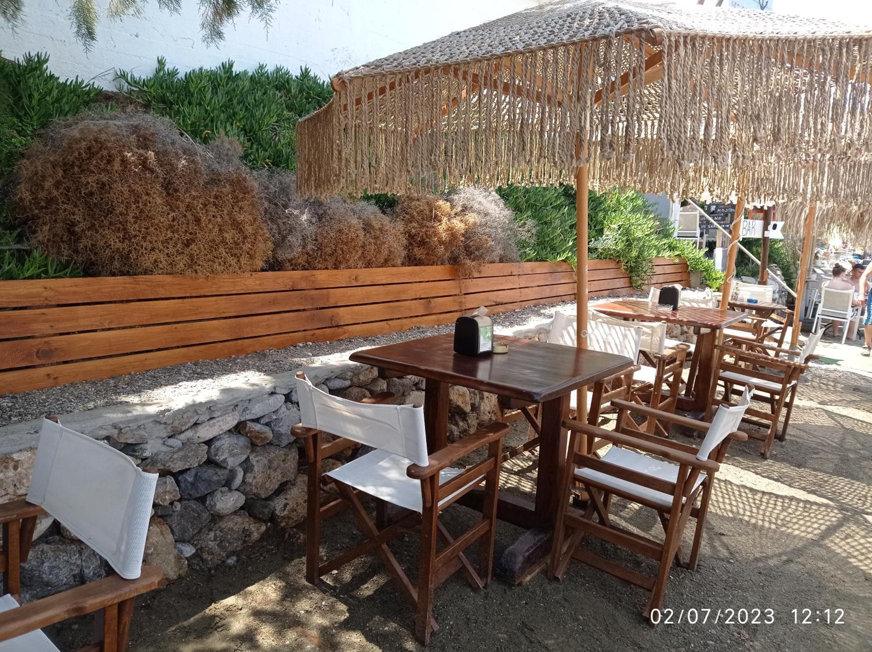 Aardige gastvrouw, weet waarmee ze bezig is. Fijne bar onder het hotel met gratis strandbedden en vriendelijke bediening.