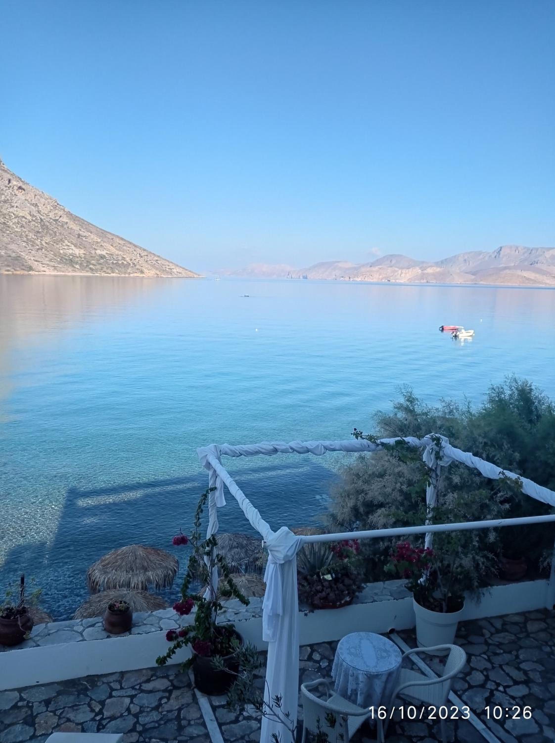 Vom Haus hat man eine Aussicht auf die Insel Telendos, die man mit häufig verkehrenden Fischerbooten nach etwa 1 km Weg zum Anleger erreichen kann. Der Ausflug ist es wert.