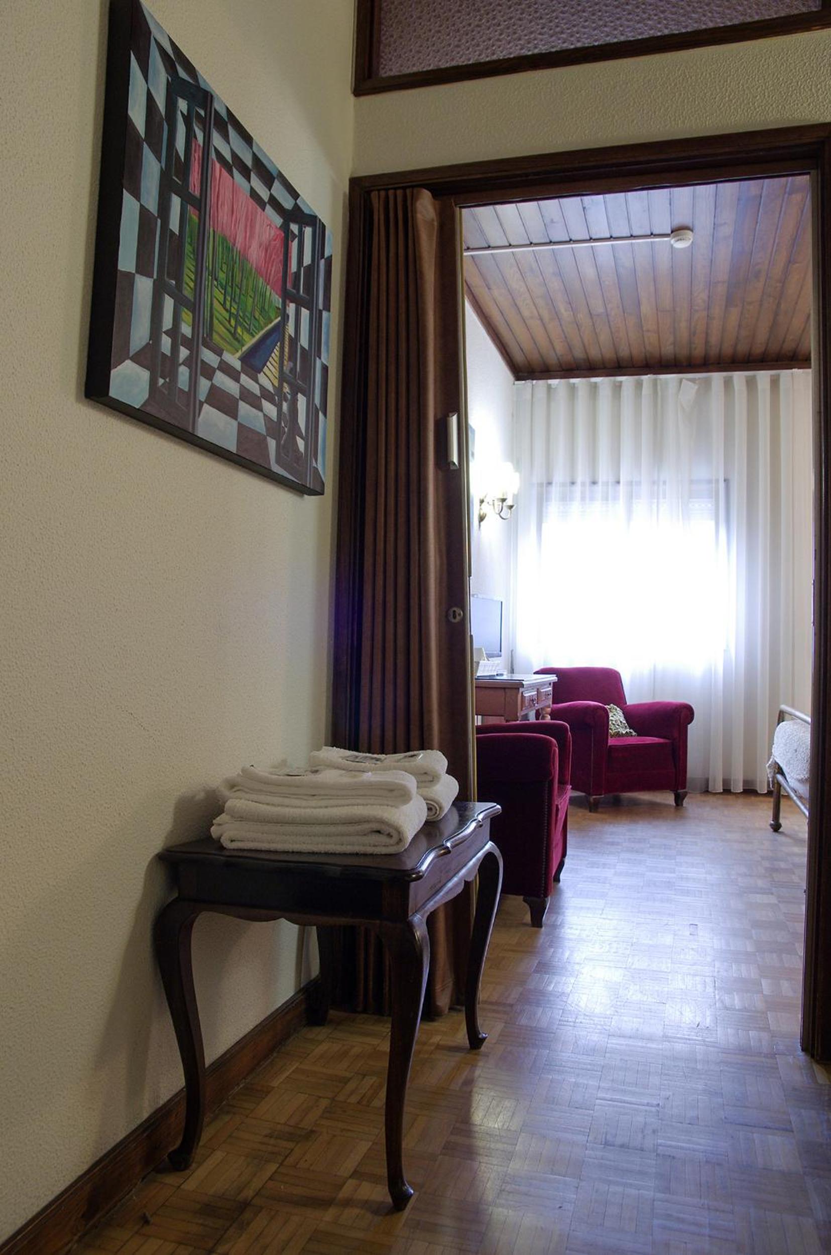 One block from the main city center in the pedestrian walking area yet not far from a side road. Also a healthy walk from the train or bus garage. We came by train and left by bus and walked it. The hotel I believe has 13 rooms total. Some have twin some two person bed, I'm not certain their size as we had twin beds. Large closet with four drawers and 12 hangers. A desk, tv we were to busy and never used it. We were on the 3rd floor which has stairs or elevator access. First there are stairs from the street. So it is not wheel chair accessible. We had a balcony that overlooks the pedestrian walk and most of the other buildings. We could see all the way to the Bon Jesus church. Private bathroom with a bidet, I appreciate this since I have one at home. The bath is short on places to put things so we just used our travel kits. Large full length mirror opposite the slider to the balcony. The room was kept clean as we're the towels as provided. Breakfast was served each morning . Fresh seasonal fruit well the time we were there was harvest so we had much. Fresh squeezed orange juice I saw it being squeezed! Crusty rolls, sweet rolls and some muffins. A luncheon meat and a cheese was offered. A variation of yogurts. Coffee or tea is offered. Flake cereal and milk. Just outside the hotel is a dress shop, fresh fruit market, wine bar, drug/apothecary store, shoe stores, jewelry store and one of the oldest open restaurants. This is a jewel of a hotel and the price is very reasonable less than $60/night. If you are here for sight seeing or business you can't go wrong. Book early he has regular guests and contracts with the local universities. I asked for an iron which was loaned out for the night. Bring both adapters for round sockets and basic round prongs they don't fit each other. There were both in this room so I'm glad we had both.