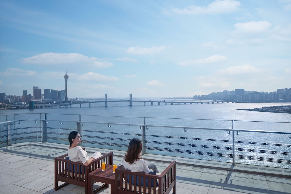 Quite an average hotel. Rooms spacious and simple. Views and balconies towards the bay. You can see the lights of the Macao skyline at night. Club lounge serves the basics. Food quite poor. Breakfast at the huge buffet restaurant also not impressive. You can find stuff to eat but the ambiance is awful. Service non existent. Gym has old technogym equipment and is facing the bay. A hotel I would not choose again