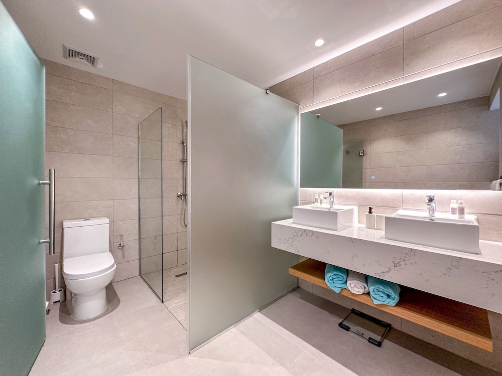 Room was massive, well equipped. Bed very comfortable, huge shower and a bath tub with headrest and glass wall if you wanted to watch the TV. Wonderful stay