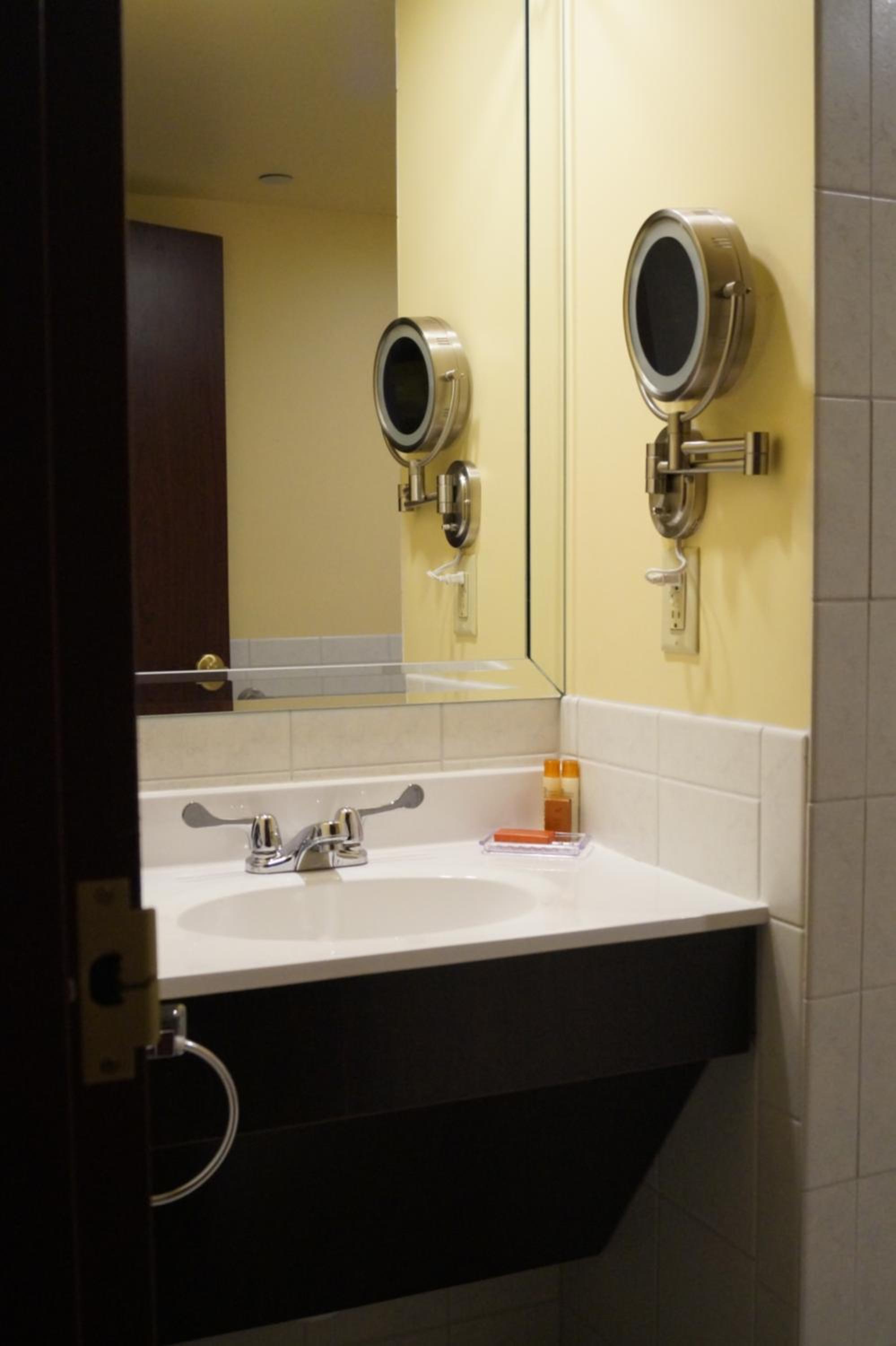 We stayed in room 208. I did not like that the sink was in the bedroom area. There were no additional blankets in the room and the blankets on the bed were thin, old and pilled. The bedspread was old, pilled, and unclean looking. The pillow cases were old, pilled and the pillows were not nearly as comfortable as you find in the Hilton & Marriott hotels. When I stepped onto the carpet without my shoes, it felt grimy so I had to have shoes or slippers on at all times.