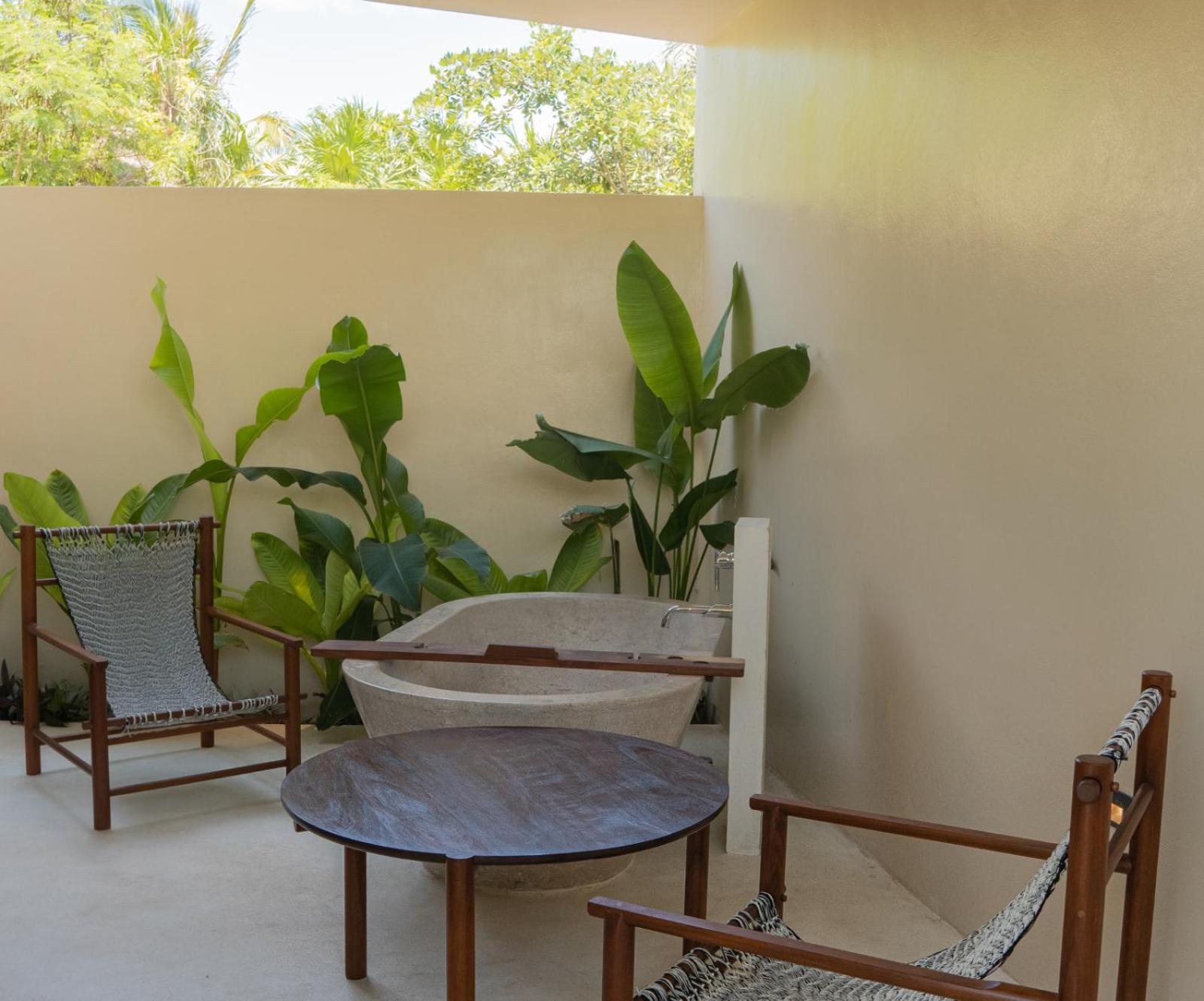 Guests can take a refreshing dip in the outdoor swimming pool or explore the lush gardens surrounding the hotel. The on-site restaurant and bar serve delicious meals and drinks, perfect for a relaxing evening after a day of exploring Bacalar.