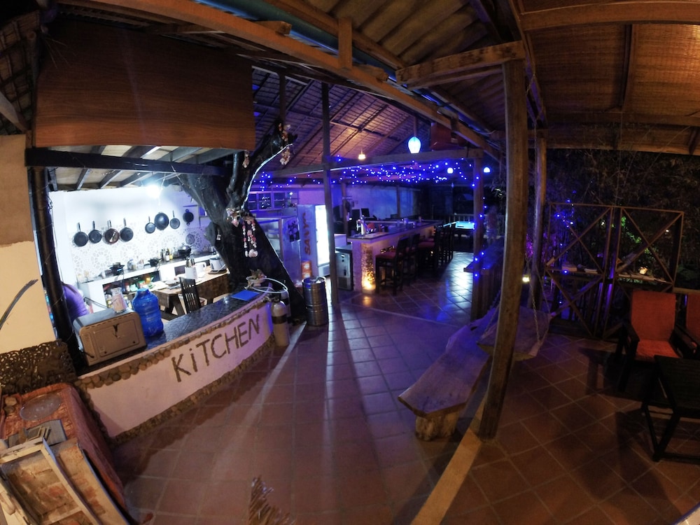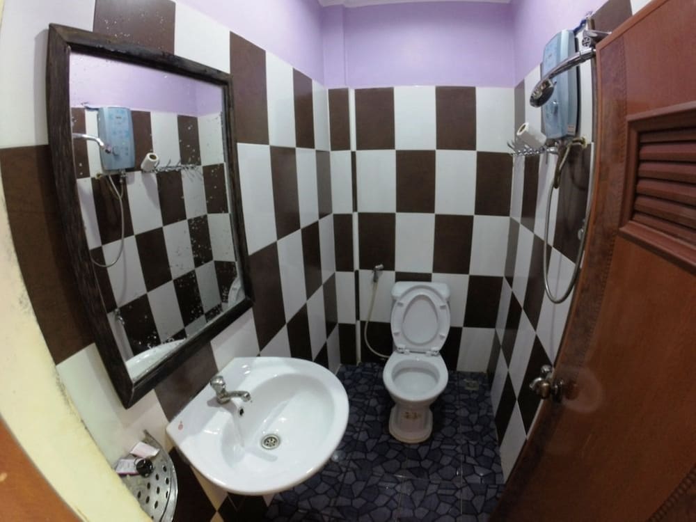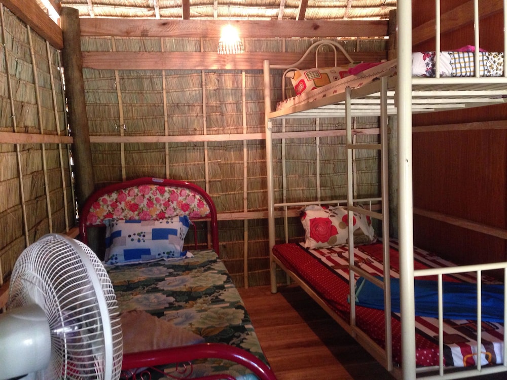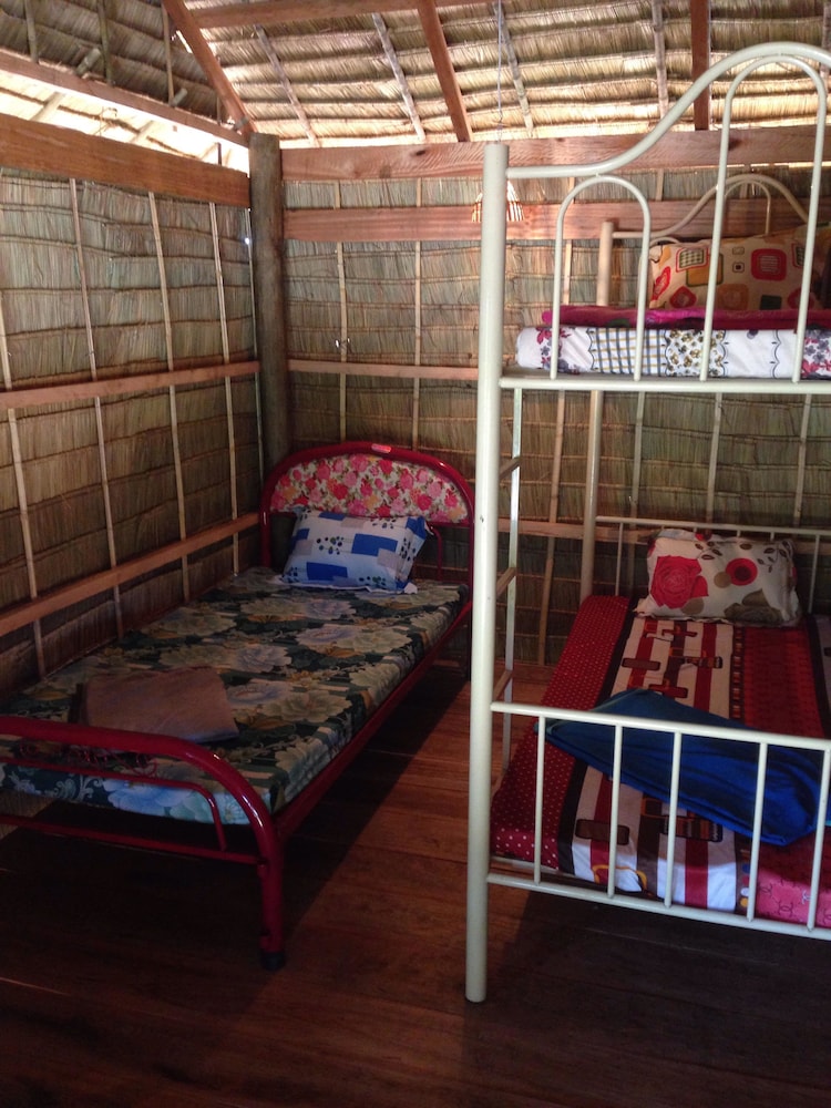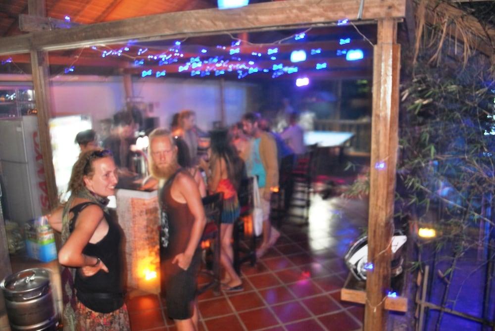 Backpacker type lodge. Very basic rooms with A/C. Bathroom / Toilet wet room. Bar & pool table the main entertainment of the facility. Nice deck overlooking the river. Staff friendly and able to call tuk tuk for us and arrange bus travel to next destination. Clean, but basic lodge. Walk to town about 10-15 mins over the river.