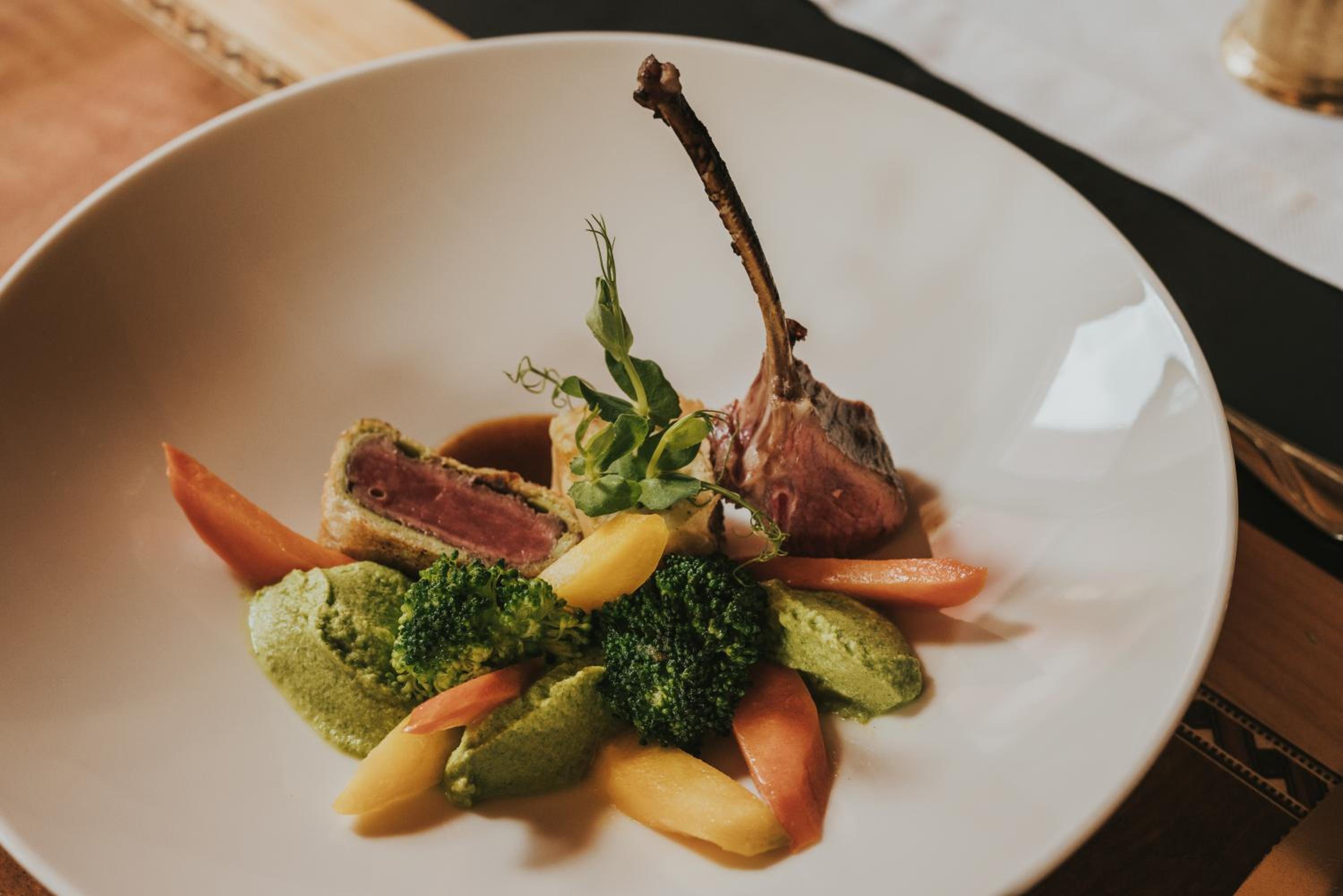 Lovely room with a really comfortable bed. The bathroom was modern and looked new. The food was amazing, very much like a high end restaurant. The staff were really good and would help you with anything you needed.