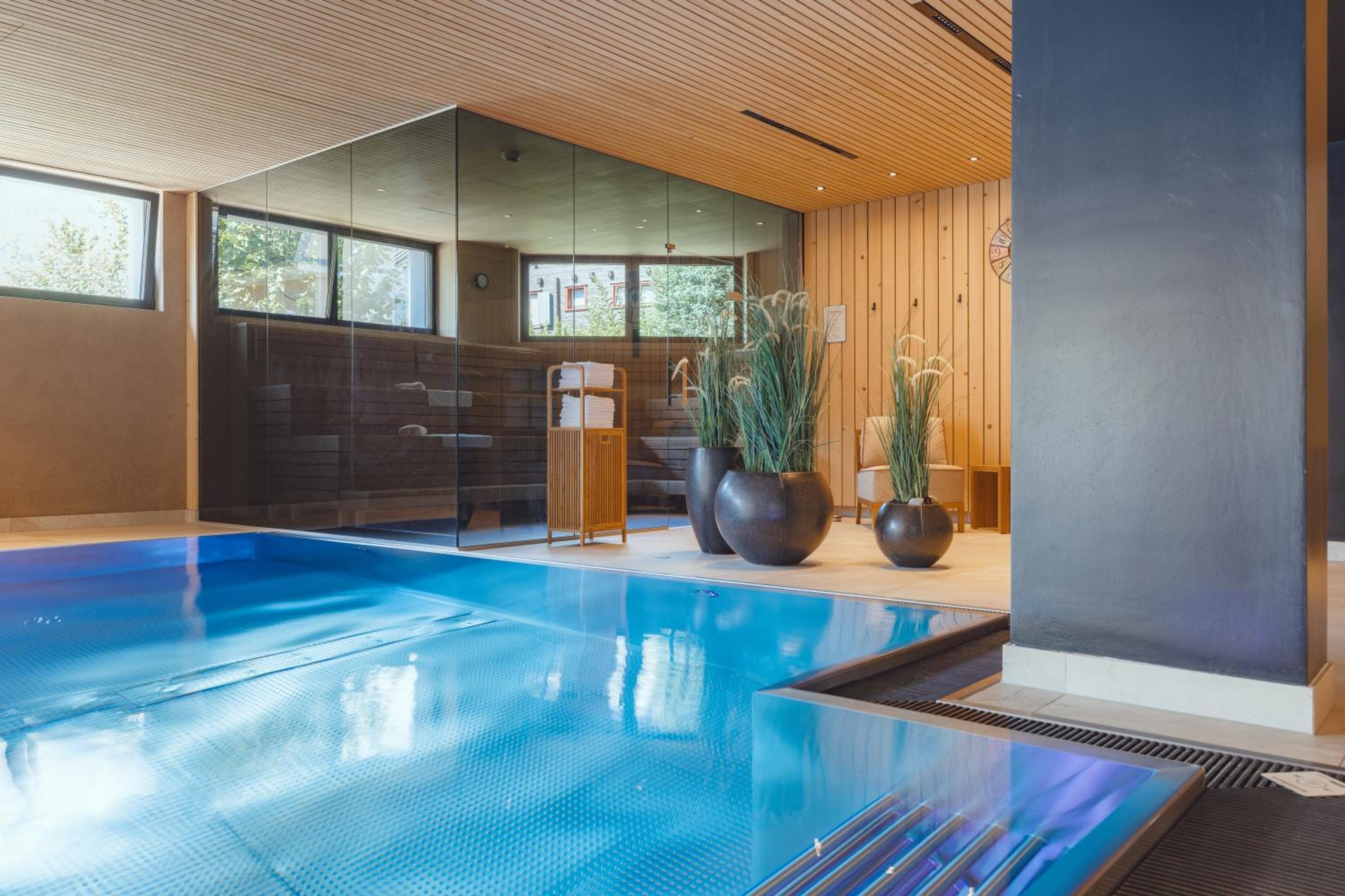 Unwind in the wellness area after a day of outdoor activities, featuring a sauna, steam room, and indoor pool. Treat yourself to a professional massage in the cozy yet spacious rooms, ensuring ultimate relaxation during your stay.