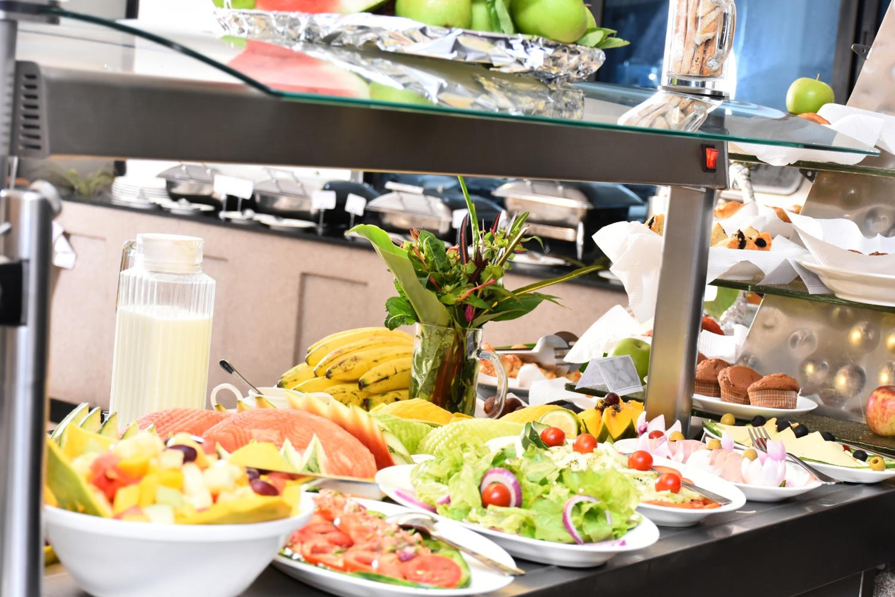 Indulge in a culinary journey at the hotel's restaurant serving French, Mediterranean, and African cuisine, or enjoy a relaxing drink at one of the two bars on site.