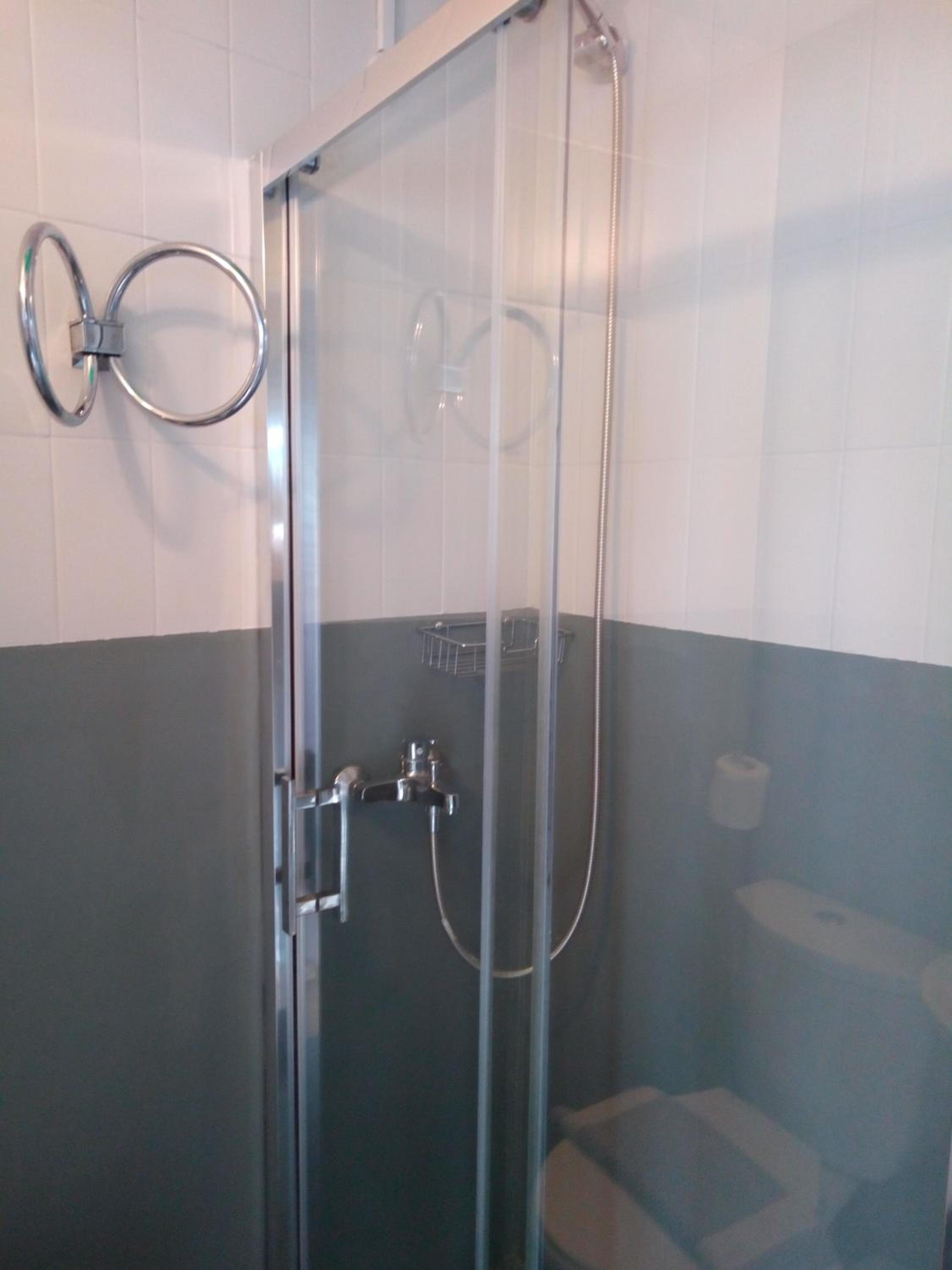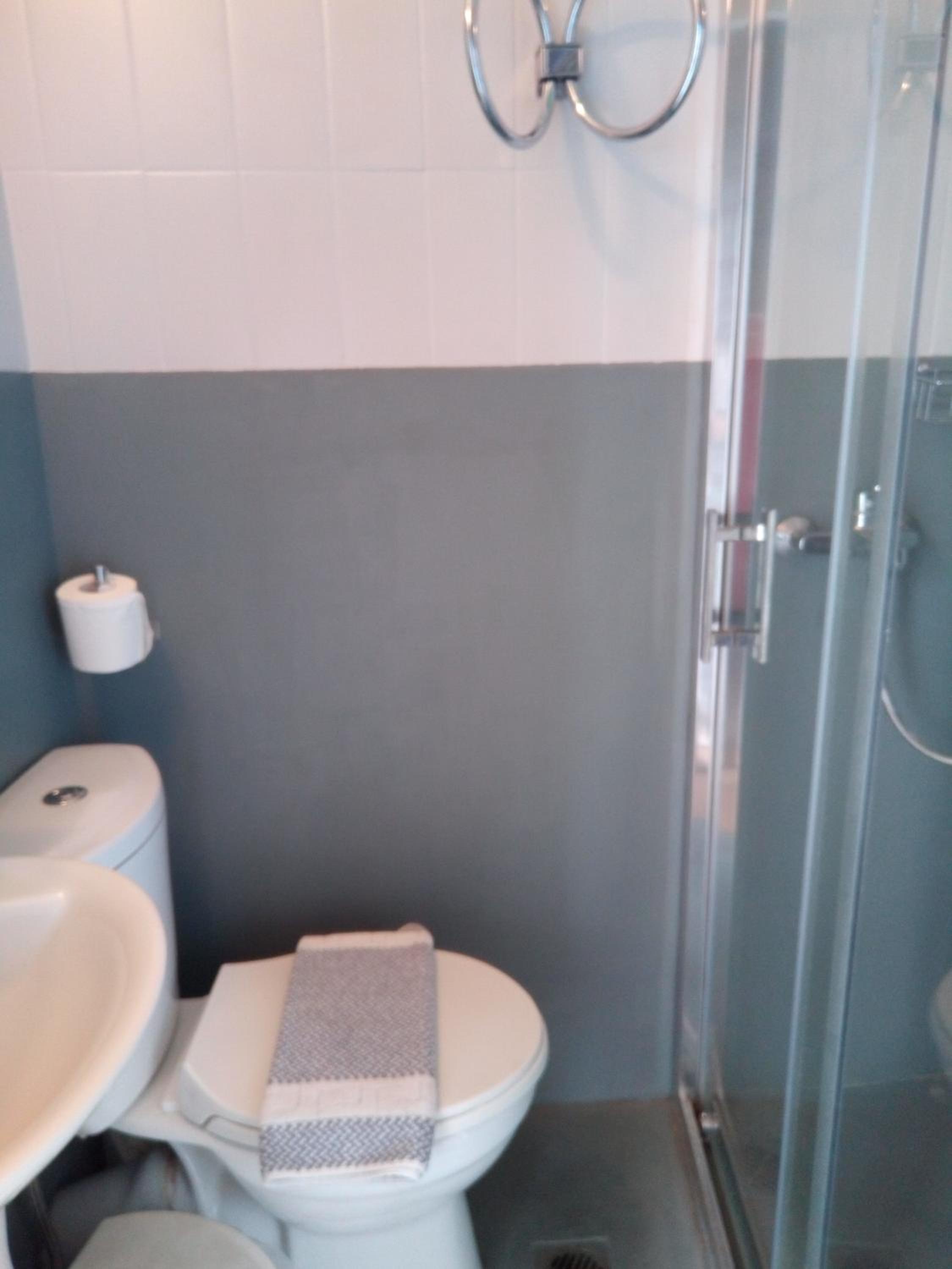 Broken toilet seat. Bathroom extremely small, no practical at all..