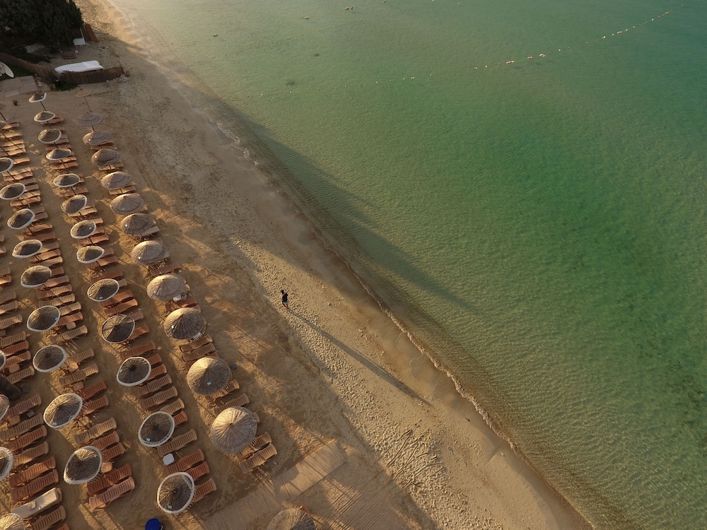 Haftasonu kaçamak yapalım diyerek gittiğimiz otelden genel anlamda memnun kaldık. Beach içinde olması büyük avantaj. Kalvaltisı gayet iyi ve yeterliydi. Deniz çok güzeldi. Bizim rüzgarlı ve dalgalı zamanina denk gelmemiz şanssızlik oldu.odalar biraz elden geçirilmeli. Öneri olarak otel müşterilerine beach içindeki yeme içmesinden bir miktar indirim saglanabilir. Genel anlamda memnun kaldım. Umarım yine giderim.