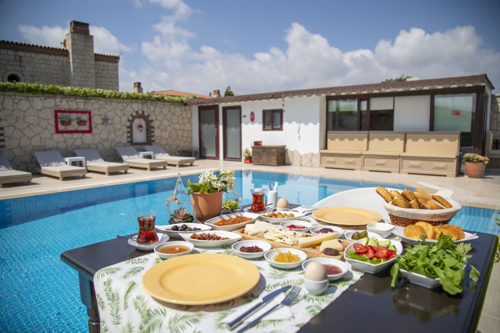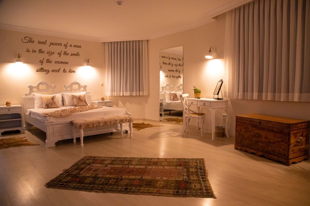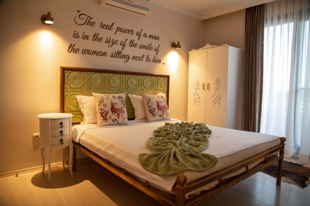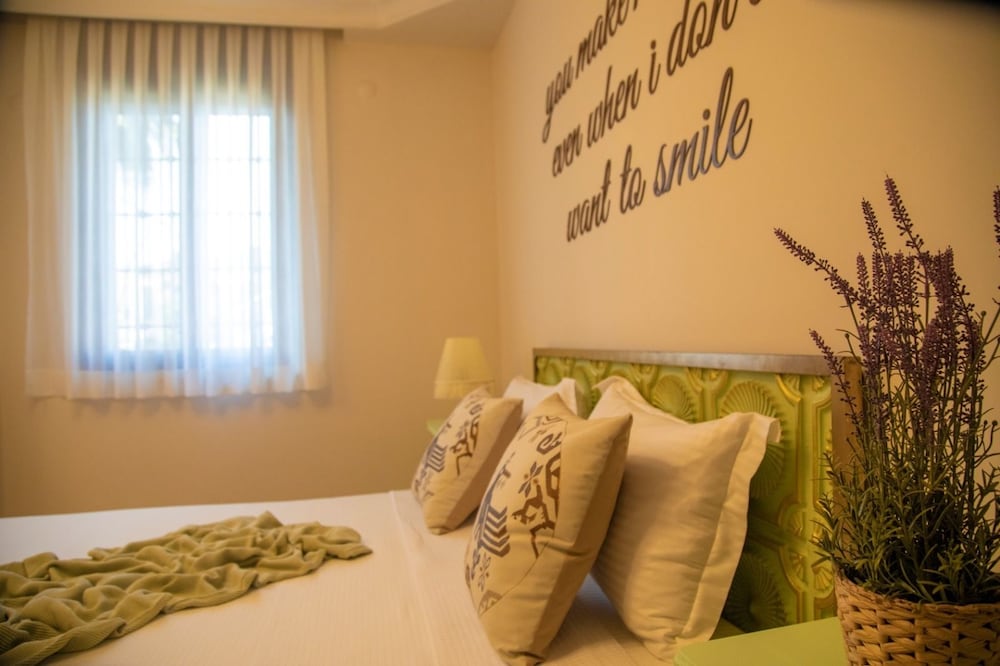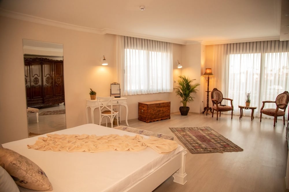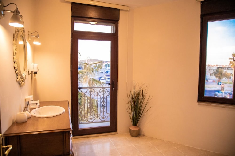 oda oldukça geniş, büyük bir banyosu var, alaçatı merkeze çok yakın, temiz ve bakımlı, tek sıkıntı odanın kavşağa bakıyor olması, bu da trafik sesi demek, kahvaltıdaki ev yapımı börek çok güzeldi, genel olarak güzel bir otel ancak aynı odada tekrar kalmak istemem
