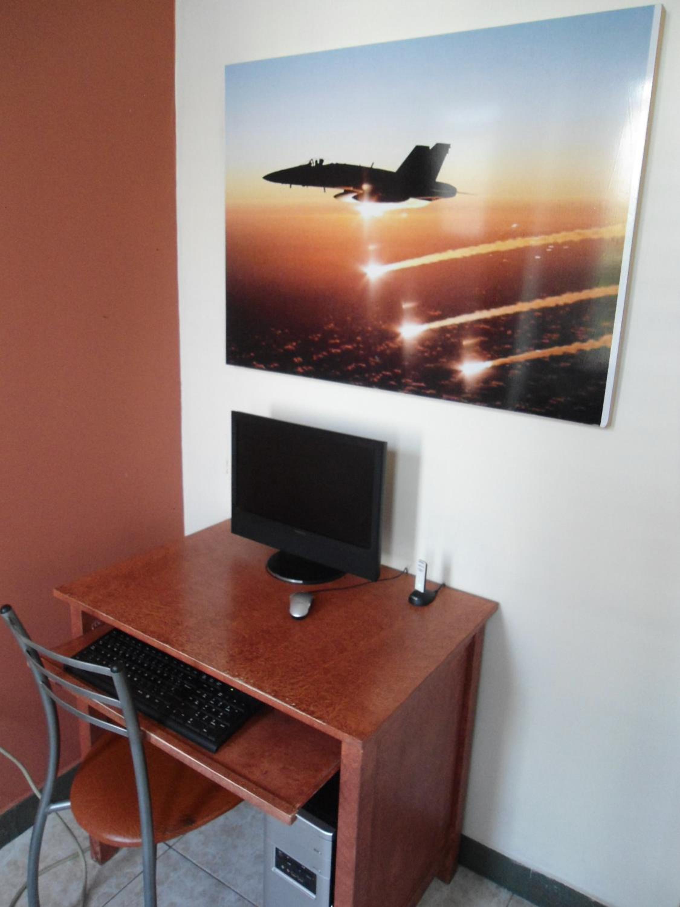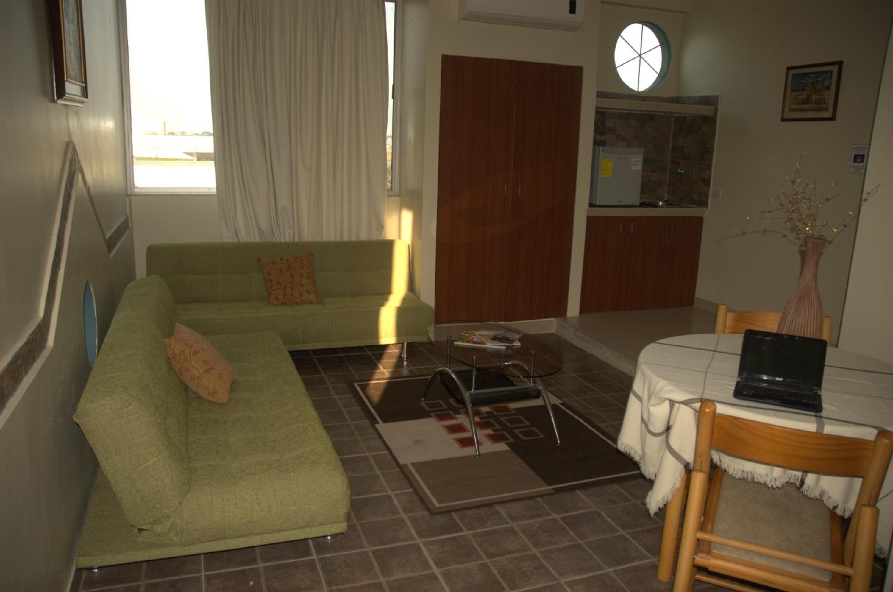The rooms at Air Suites are designed for convenience with features like air conditioning, cable TV, work desks, and minibars. The suite even includes a microwave and refrigerator for added comfort. The cheerful décor adds a touch of warmth to the stay.