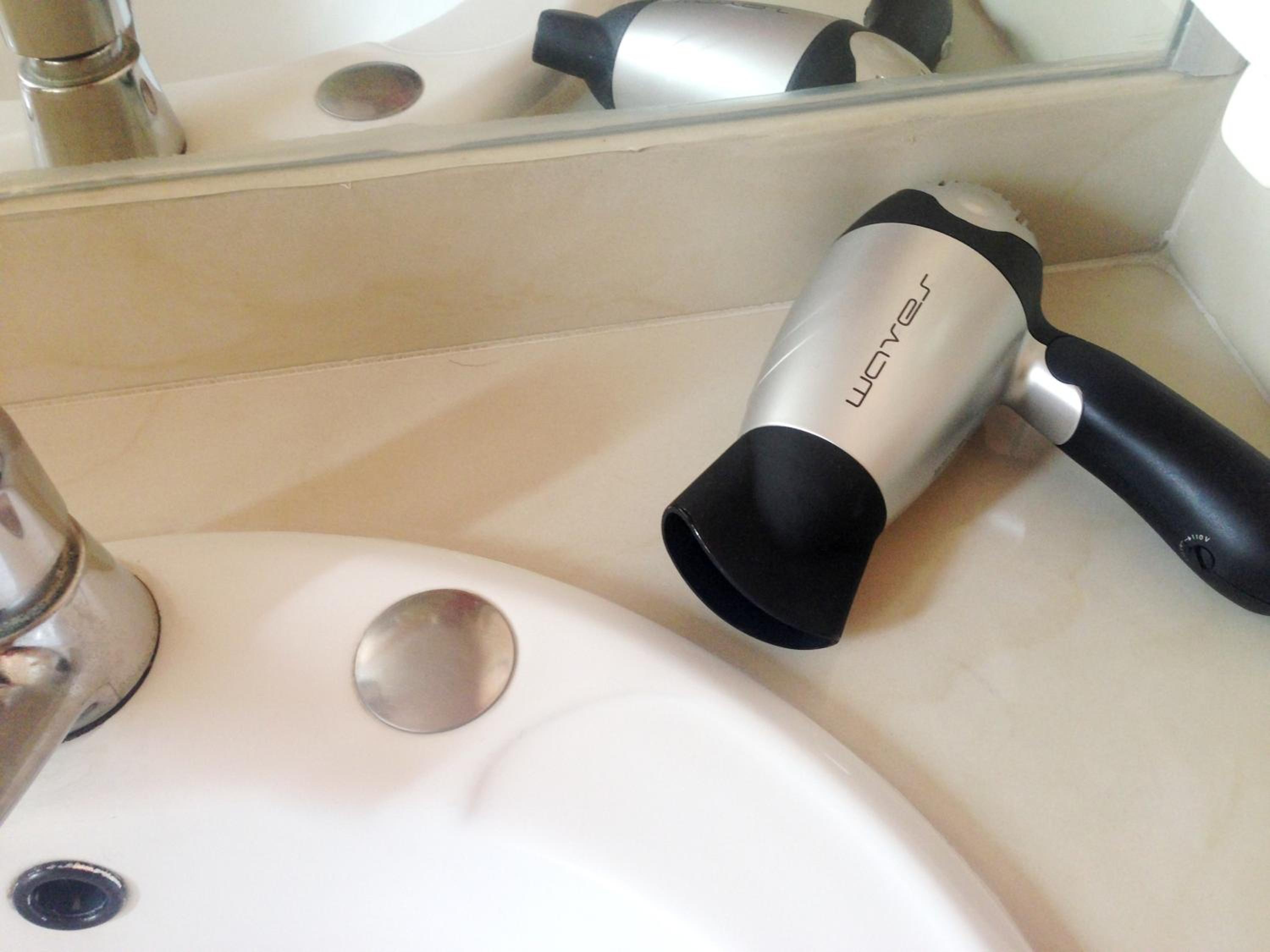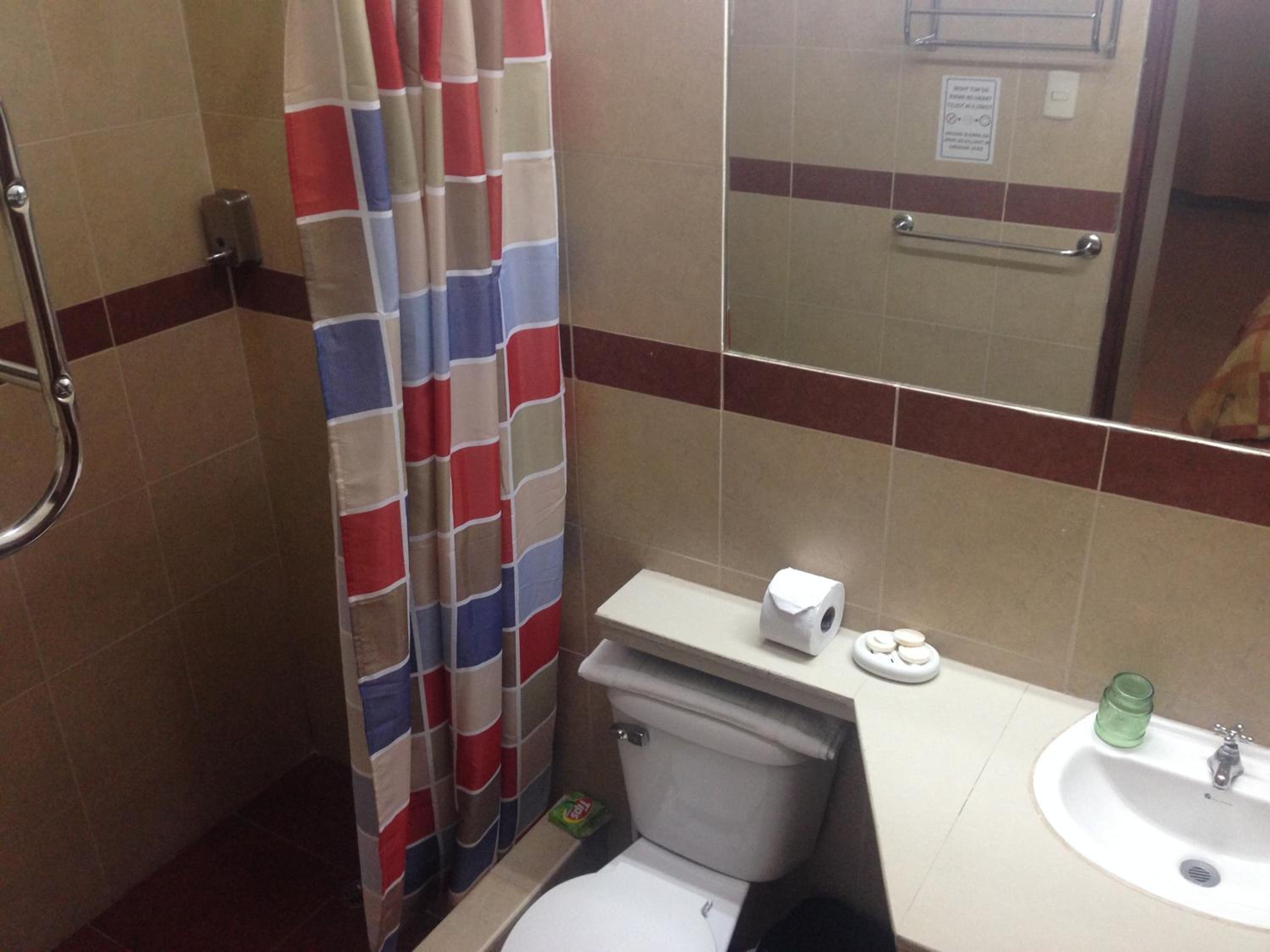 Douche sans pommeau. Pas de verre à dents. Éloigné des attractions principales