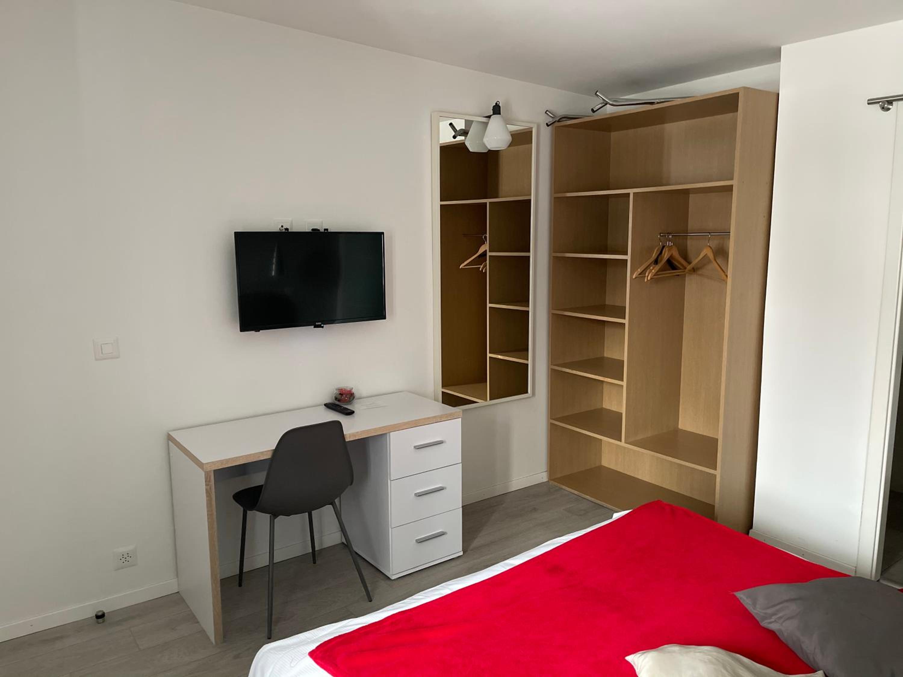 Pas de code Wifi dans la chambre. Chauffage pas réglable. manquait une porte de douche. Un ventilateur hygroréglable qui se déclenche la nuit tout seul.
