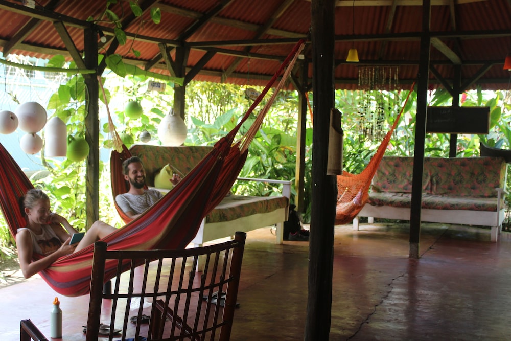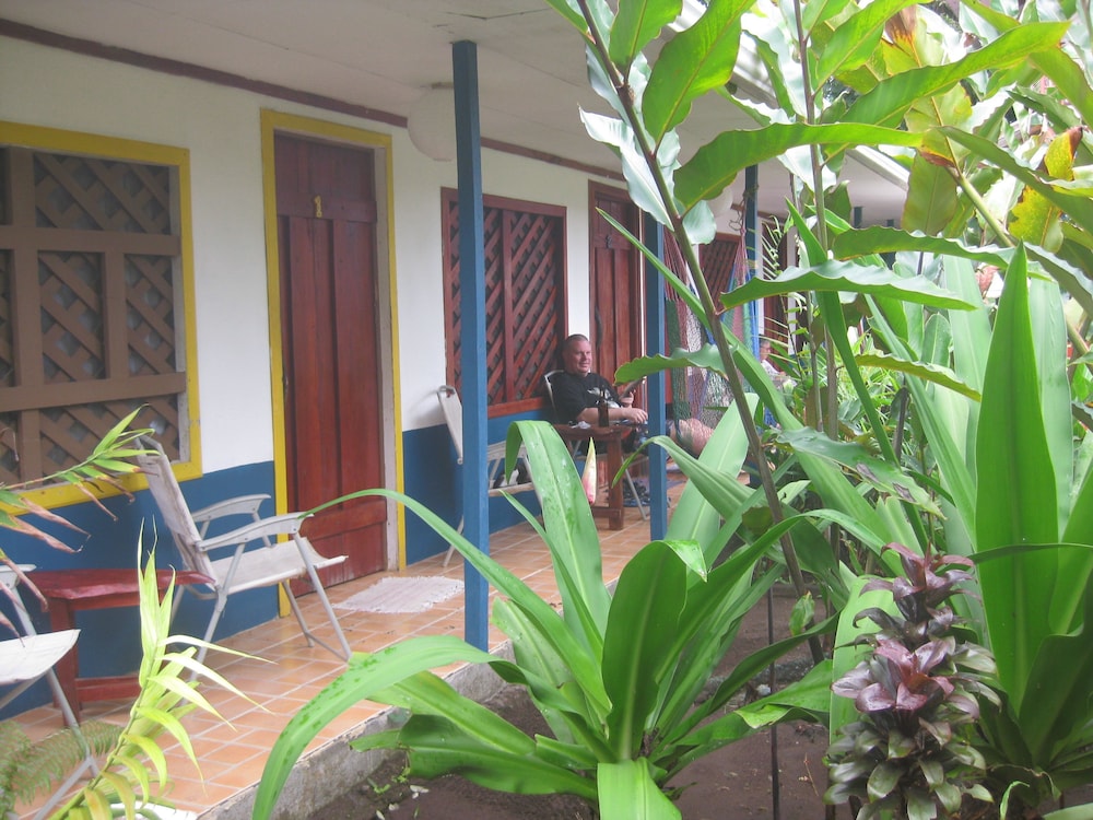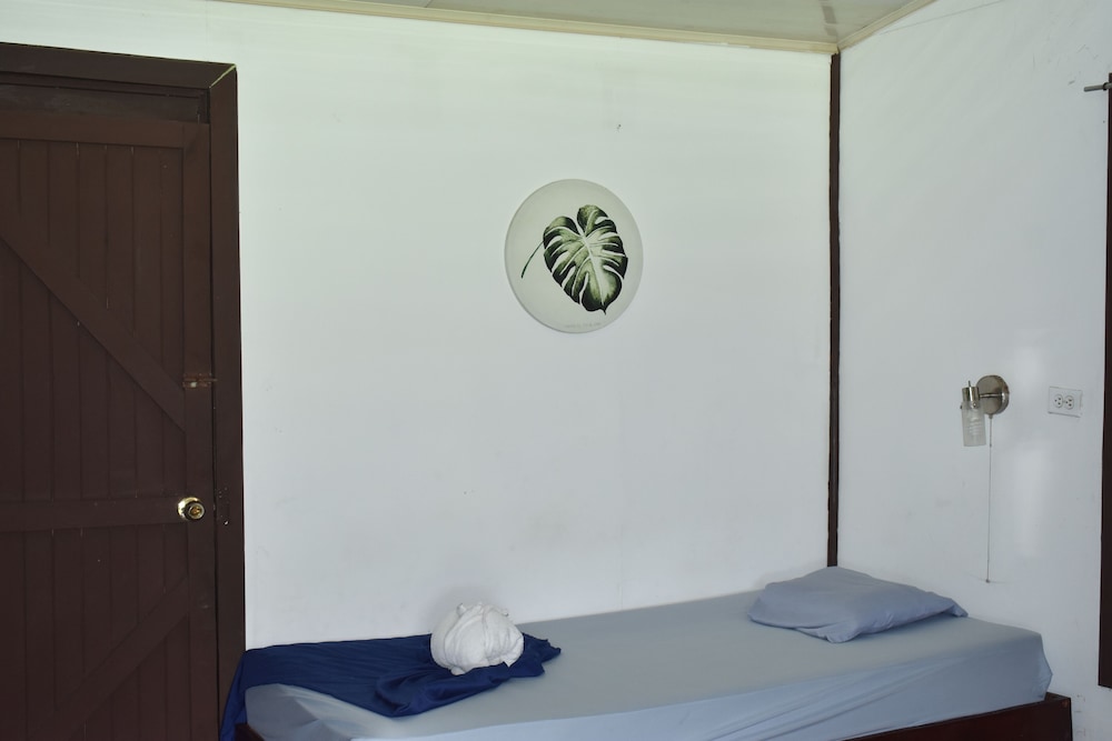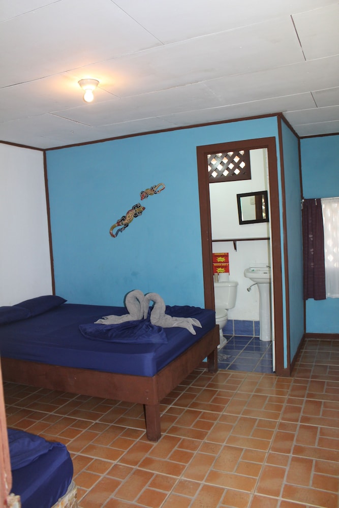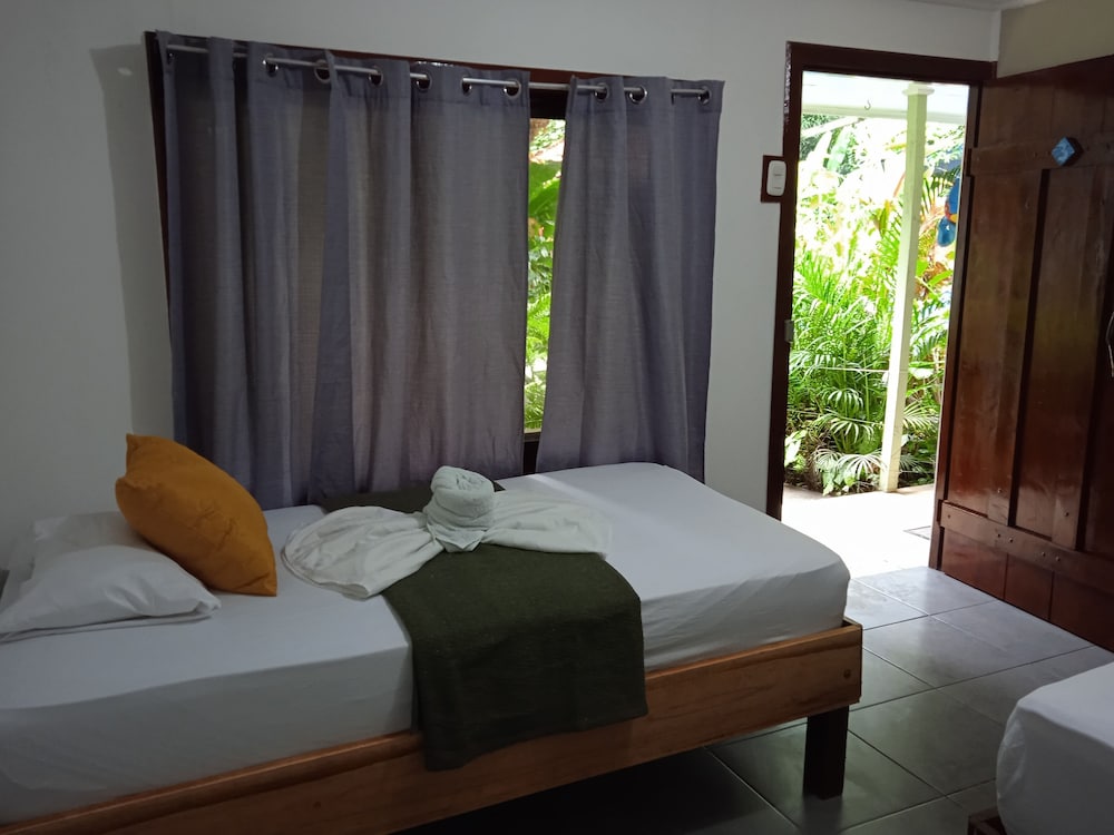 it was nice that roberto greeted us from the public ferry dock and showed us around town. he was helpful with the guided tours information, and we were able to use the kitchen to cook our own food, so that was a bonus! the propritor was very sick and had sick baby, so we felt bad for her, but she seemed as cheerful as could be under the circumstances. we wish that there were little carpets for the floor by our bed because the sand was hard to control and thee needs to be some kind of ground cover or maybe buckets of water to rinse your feet before you track in into your room. we rented a kayak and took the tour ourself and we saw some really amazing things, like tons of birds, monkeys, and blue morpho butterflies. you have to get up early to get your tickets at 5;30 am. or you will need to go at a later time during the day, as they only allow 14 kayaks in every 3 hours to the national park. being there early you get so see more animals hunting and the howler monkeys are so loud!