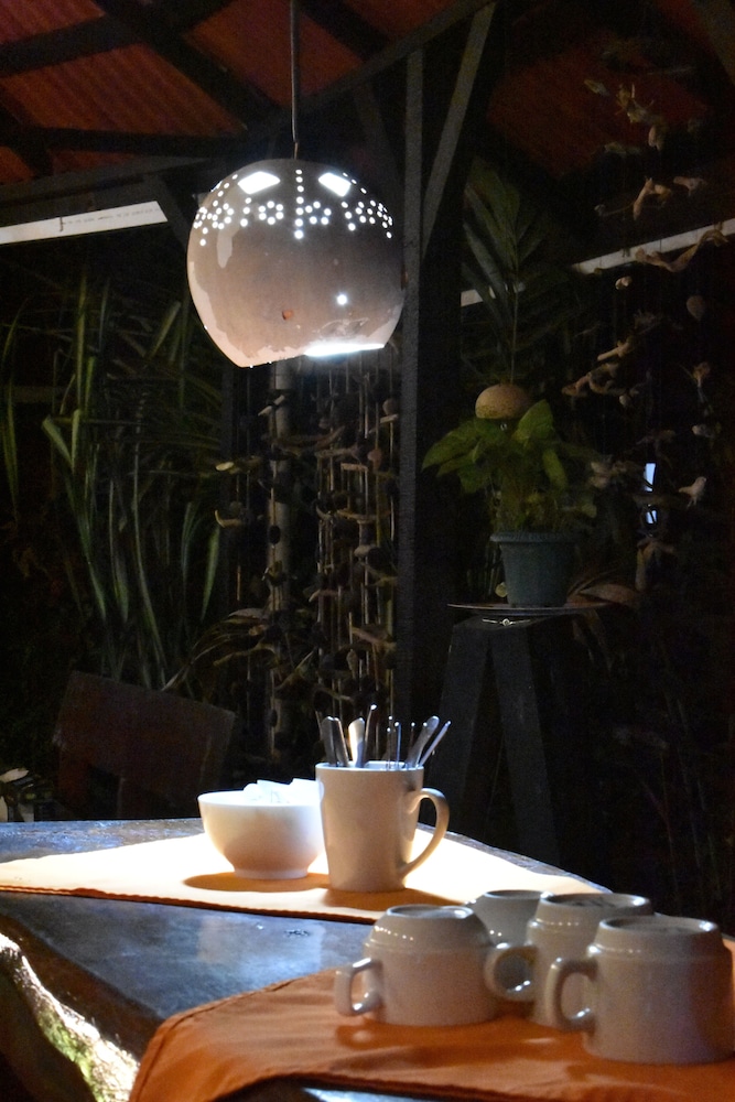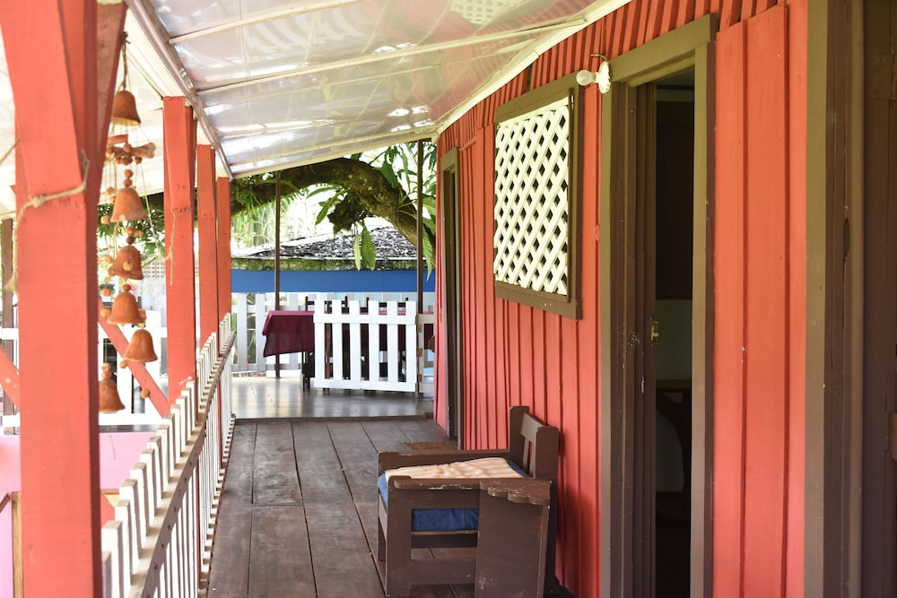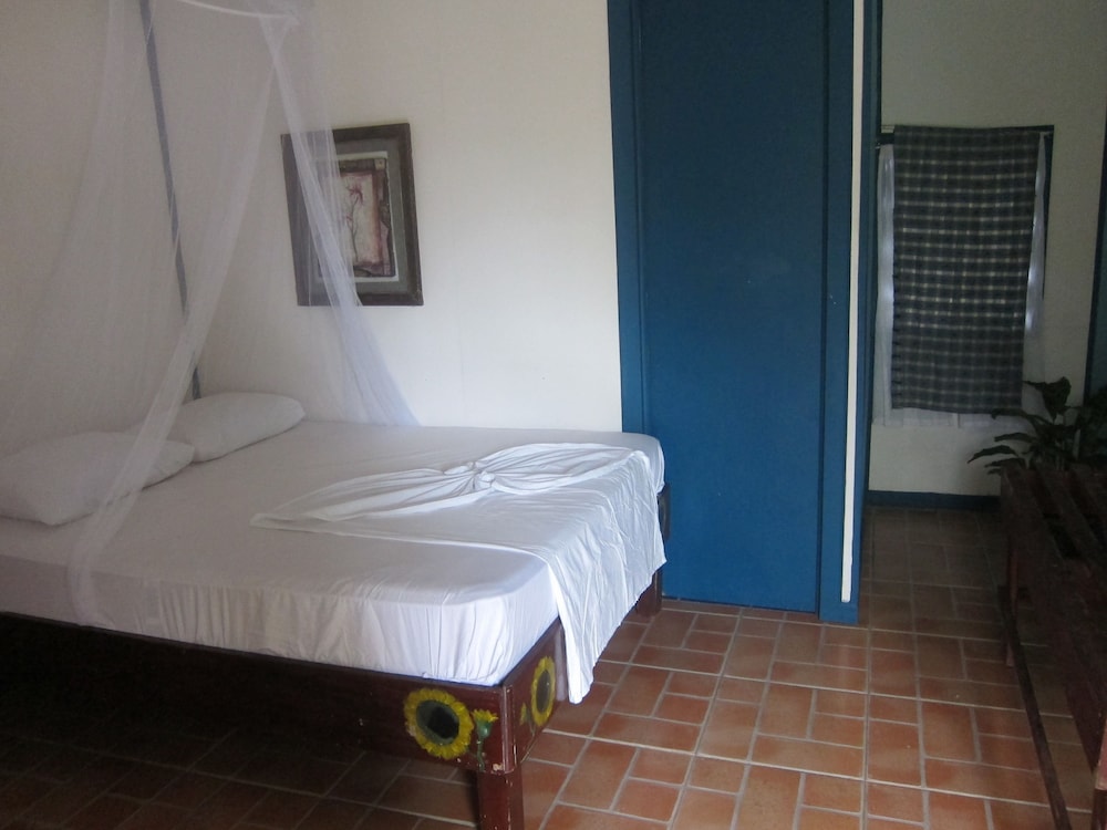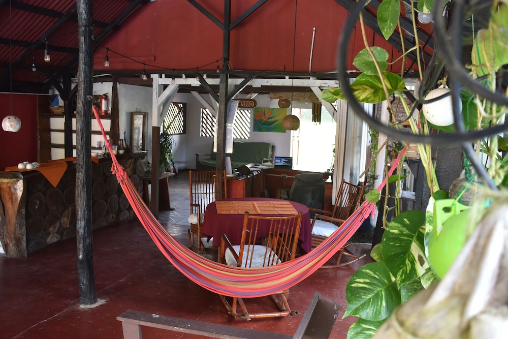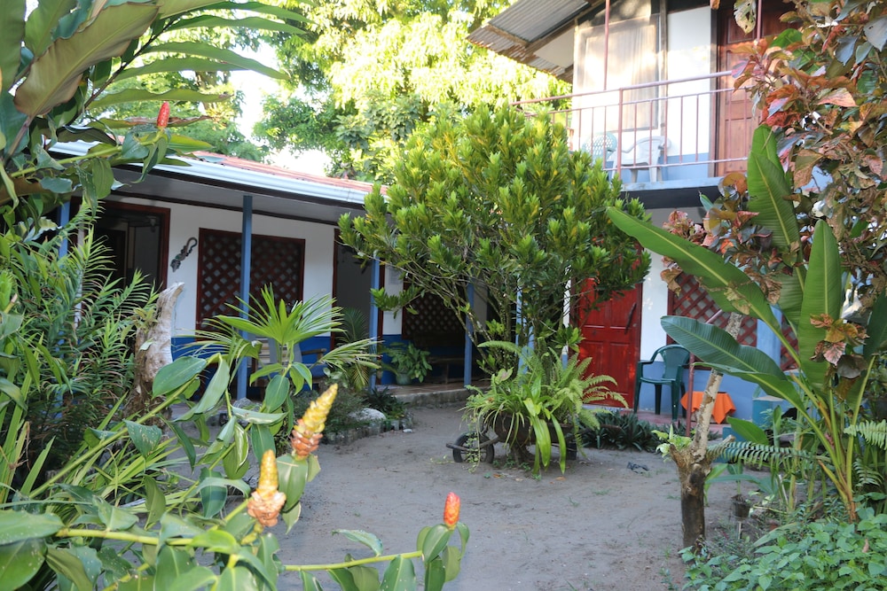 it was nice that roberto greeted us from the public ferry dock and showed us around town. he was helpful with the guided tours information, and we were able to use the kitchen to cook our own food, so that was a bonus! the propritor was very sick and had sick baby, so we felt bad for her, but she seemed as cheerful as could be under the circumstances. we wish that there were little carpets for the floor by our bed because the sand was hard to control and thee needs to be some kind of ground cover or maybe buckets of water to rinse your feet before you track in into your room. we rented a kayak and took the tour ourself and we saw some really amazing things, like tons of birds, monkeys, and blue morpho butterflies. you have to get up early to get your tickets at 5;30 am. or you will need to go at a later time during the day, as they only allow 14 kayaks in every 3 hours to the national park. being there early you get so see more animals hunting and the howler monkeys are so loud!