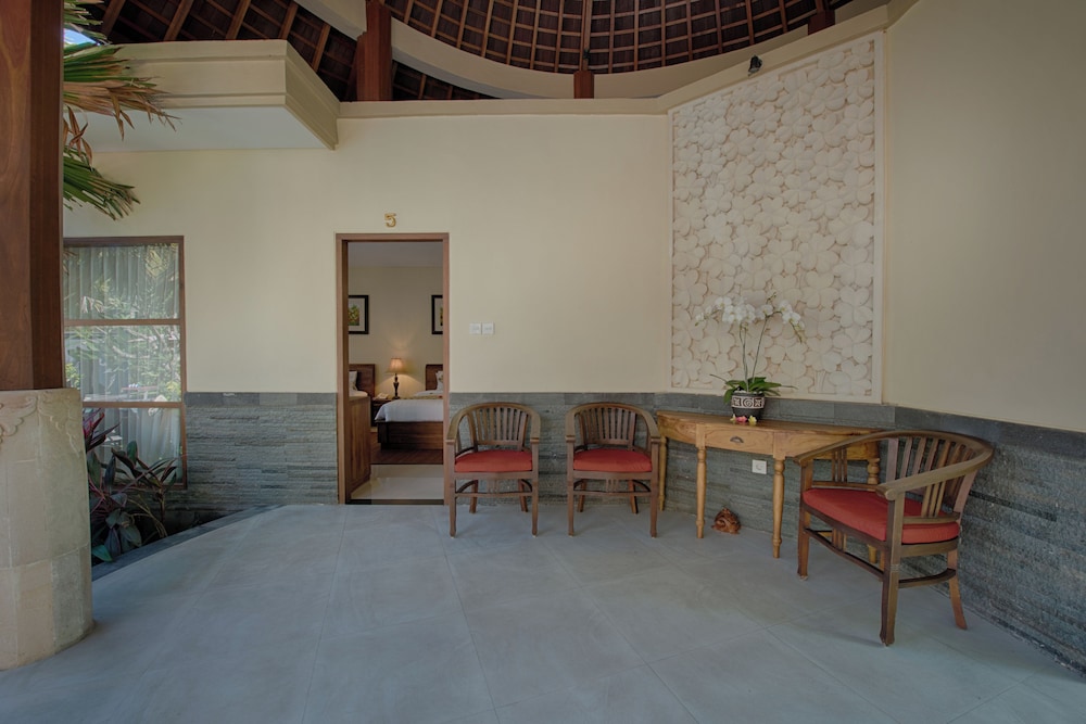 Der Aufenthalt war wunderbar. Sehr freundliches und hilfsbereites Personal. Schönes Frühstücksbuffet mi Balinesischen Spezialitäten sowie zusätzliche Eierspeisen werden auf Wunsch zubereitet. Das Zimmer wurde sogar für die Nacht vorbereitet und das Bad gegen Moskitos geschützt. Sehr schöne und ruhige Ferienanlagemit zum Wohlfühlen mit idyllischen Pflanzen, Pool und Poolbar.