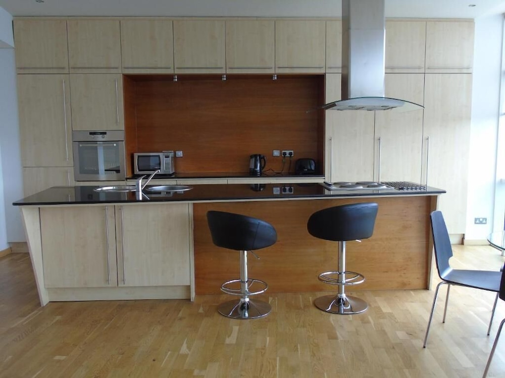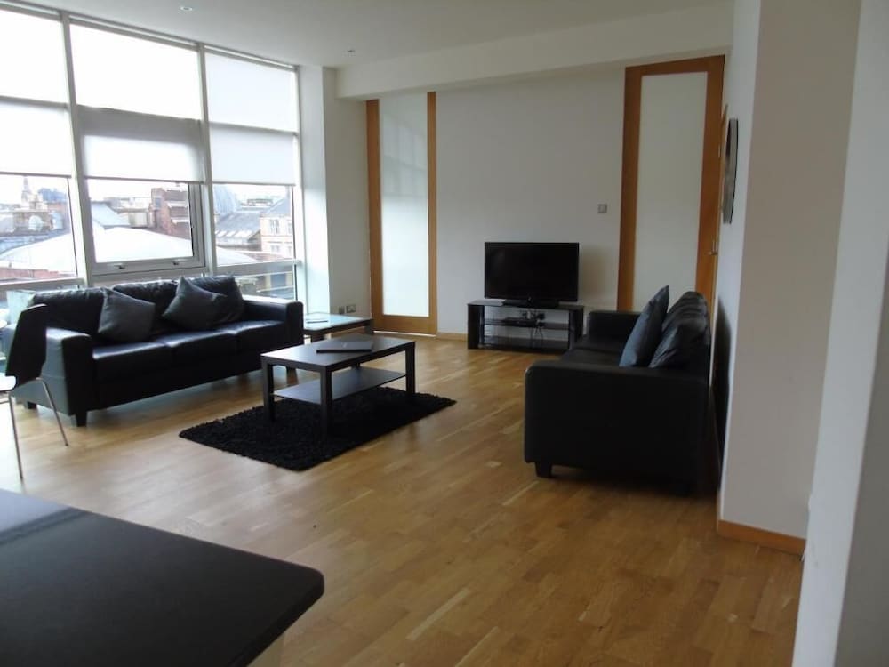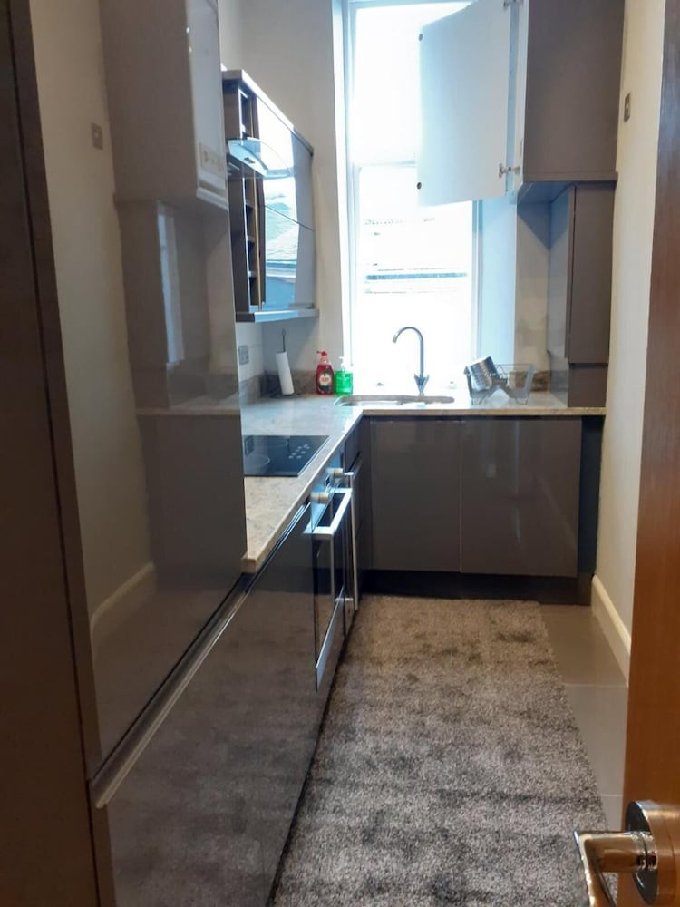 We really liked our apartment. We could live here. A very spacious living room with a big open plan kitchen and decent sized bedrooms. A shower room plus a big bathroom with large shower off the main bedroom. Loads of cupboard space and comfortable beds. Everything was clean, and the towels were nice and fluffy. The reception staff were lovely. It's not the most beautiful building, but in a very convenient location as a short walk to Buchanan street and the centre. Some of the decor a little tired, but very good value.