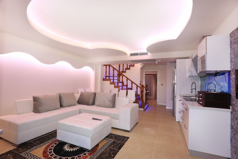 Odalar mimarla şahane dizayn edilmiş, dubleks ve deniz manzaralı. Girişte bizi Dilan hanım karşıladı, hem güleryüzlü, hem de çok yardımcı, özellikle kendisine teşekkür ederiz. Otel havuzu, yataklar, banyo, mutfak temizdi, yalnızca oturma alanındaki ve terastaki beyaz koltuk ve pufflar temizlenebilir. Çok memnun kaldık, tavsiye ederiz.