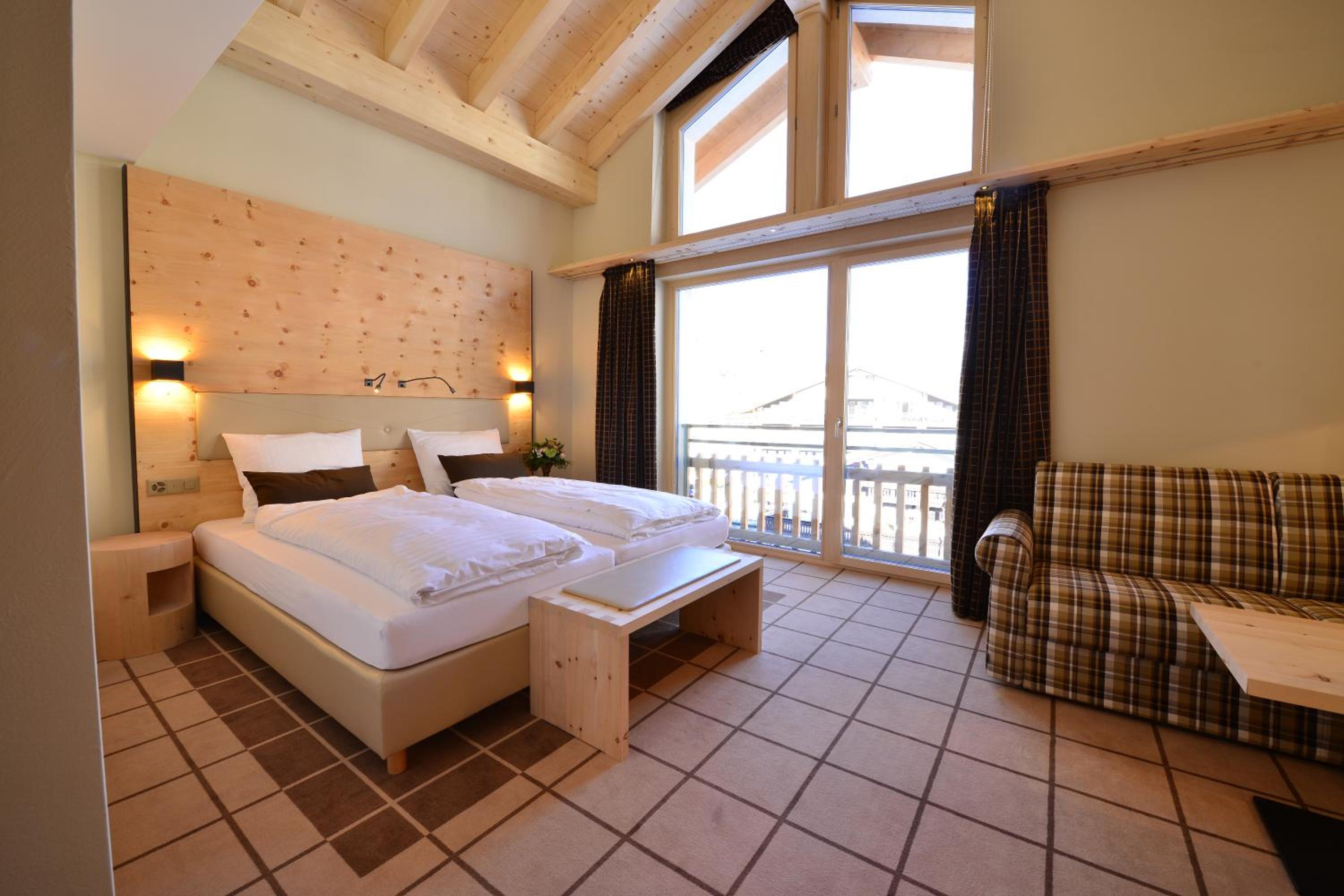 The bright Alpine-style rooms are furnished with modern amenities like cable TV and Nespresso machines. Guests can enjoy breathtaking Matterhorn views from the south-facing rooms with balconies.