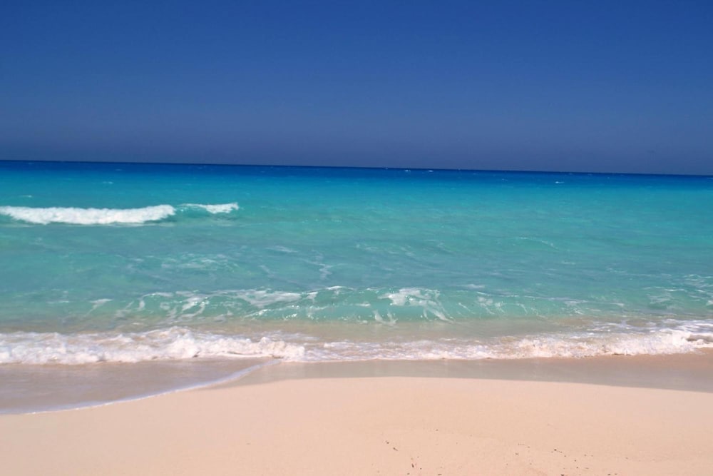 we enjoyed the lovely blue sea with soft white sand .