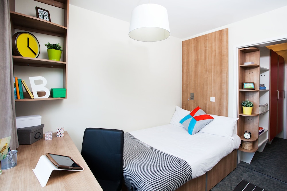 Good location, just off the Meadows. Friendly reception staff. The room was a basic student flat - one of a group of 4 individually lockable rooms with a shared front door, with en suite shower and toilet. Bed was a compact double - probably a three-quarter size. The room was basic but adequate. Towels and bedding and a single soap supplied, but no extras like shampoo, TV, hairdryer. Free wifi if you log on to the student network. There's a shared well equipped kitchen if you want to self cater. Great location for the Meadows and a 10 minute walk to Grassmarket. The area was quiet at night which was a bonus during the fringe! Good value for money for the fringe, but definitely no frills.