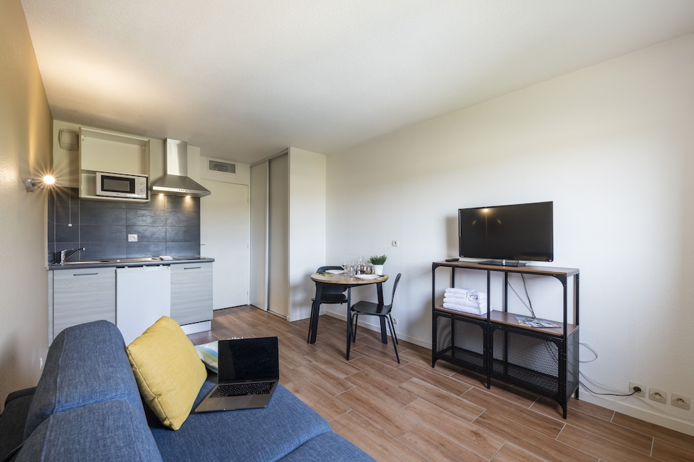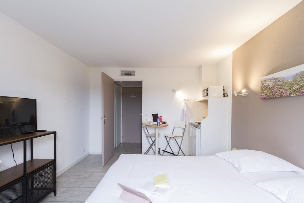 Venus pour un weekend en famille avec notre fille de 2 ans, studio pas adapté pour des enfants en bas âge. Salle de bain petite et douche minuscule. Petite piscine , vite remplie si une dizaine de personnes décident d'y aller au même temps. Ouvrez bien la fenêtre si vous voulez cuisiner dedans , la hotte n'est pas trop puissante... Isolation limitée, dernière nuit nous avons entendu toute une dispute d'un jeune couple à l'autre bout du couloir, léger sentiment d'insécurité sur le coup, car 0 vigile, réception ouverte que la journée, que un numéro d'urgence pour les "vraies urgences" selon le document collé sur la porte. Bref, nous ne recommandons pas si vous cherchez un appart hôtel digne de ce nom, avec un vrai confort, par contre si vous cherchez que le prix...faudra faire avec.