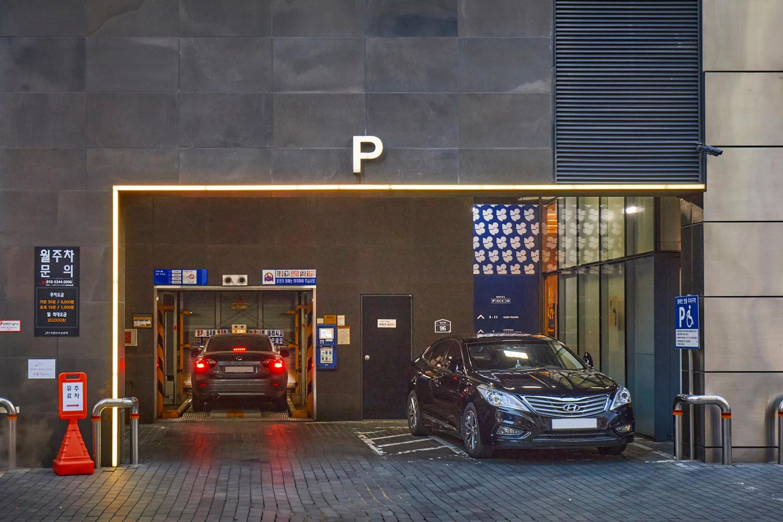 Private parking is possible on site (reservation is not needed) and costs KRW 5000 per day.