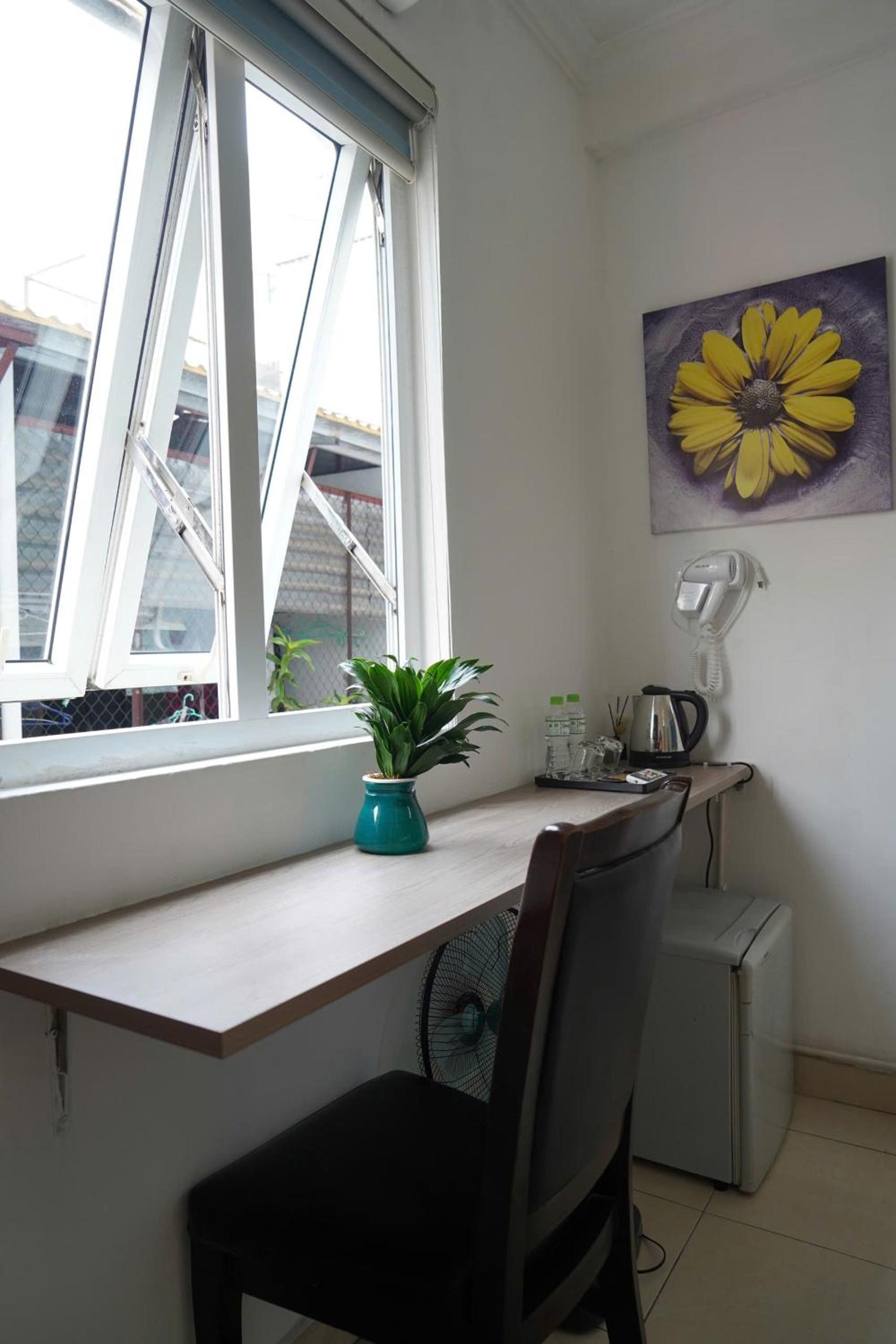 C'era tutto l'essenziale. 1 acqua a testa ogni giorno. Servizio di pulizie giornaliero. Aria condizionata. Frigo. Bollitore. Considerando il quartiere temevo di trovare degli scarafaggi in camera ma invece no. Penso che sia gestito bene.