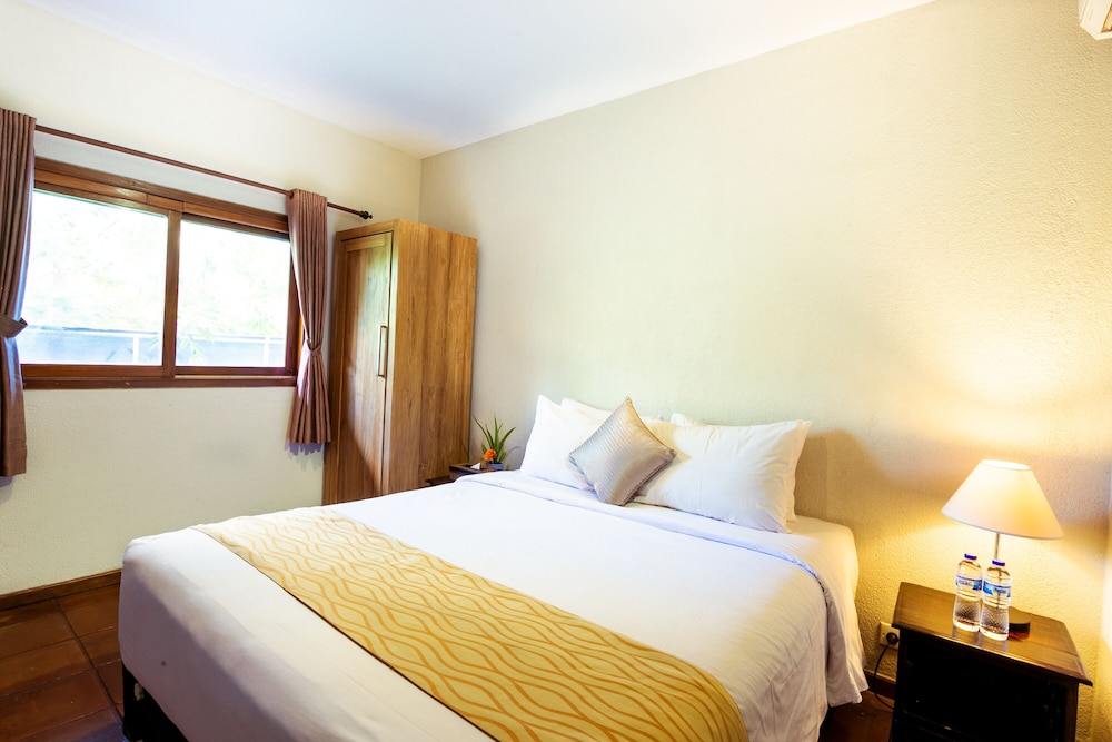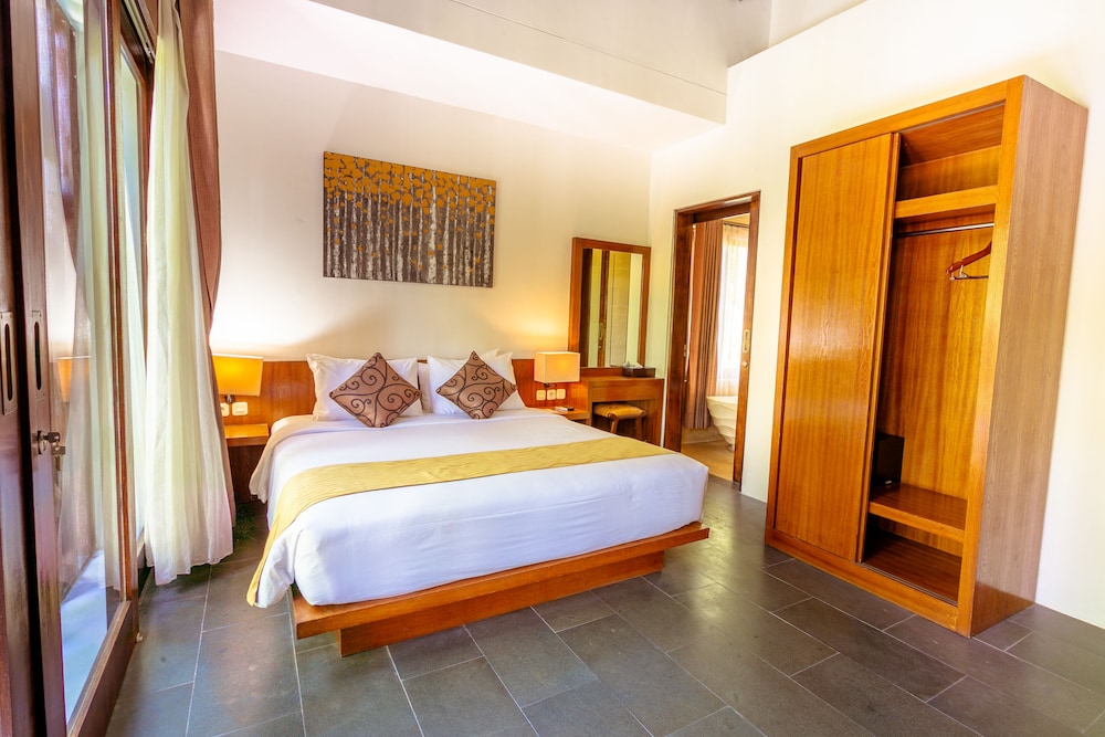 I would stay here again. We were lucky and were upgraded to the 3 bedroom villa.We were only allowed to use one of the bedrooms so we didn't get to see the others but the room was nice. The whole villa needs a little updating and cleaning but the pool was great and the space was wonderful for relaxing. This would be a great place to stay with kids. The staff was excellent and the Spa was good - had a very good facial and husband had massage.There was a problem with the advertised 20% off spa and food with stay but after time on phone and my proof of showing reservation they gave that as well. Also rented a NEWish Scoopy from hotel for rp 70,000 a day - which was great - we pay less in Ubud but the bikes are never as nice so we were happy. Got ride to airport by their driver Made who was excellent - great conversation too!