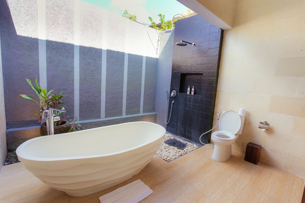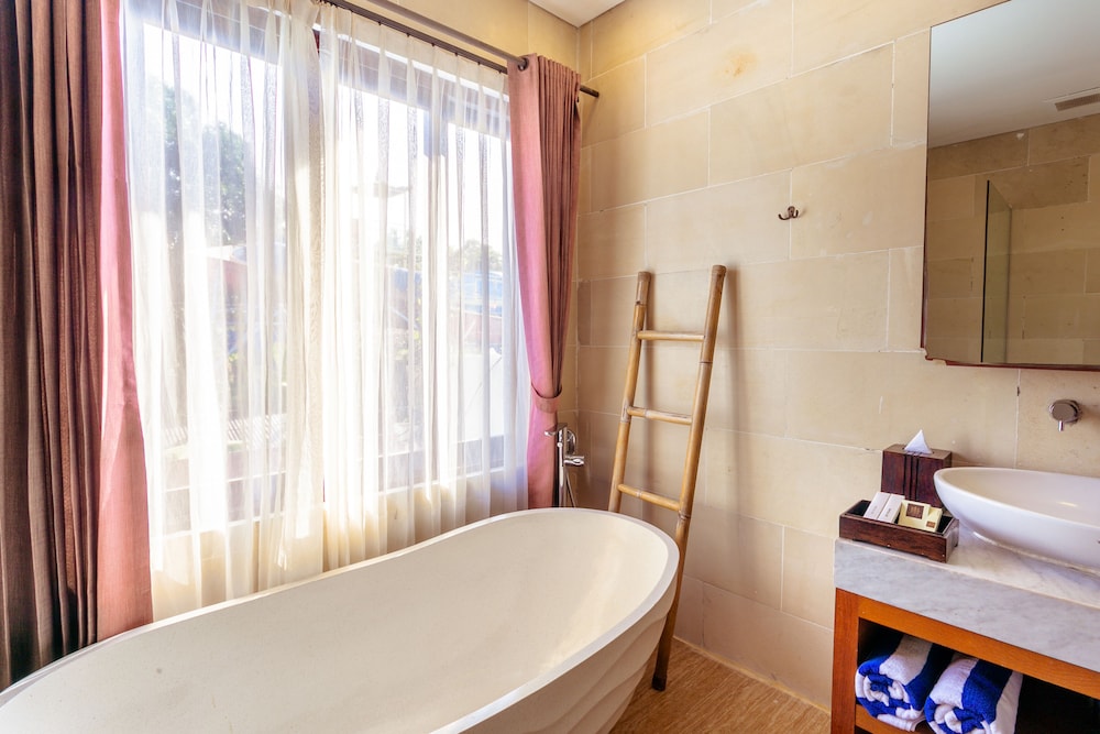 We loved our stay at the Canggu Boutique Villas & Spa. It was one of the nicer places we stayed in Bali, and yet it was still affordable. Highlights were our private plunge pool outside, the deep soaking tub, and super comfortable bed with air conditioning and premium amenities (robe, toiletries, TV, etc). The only thing to consider is that it's about an 8-10 minute drive away from the main places we ended up going in Canggu, which was totally fine for us.