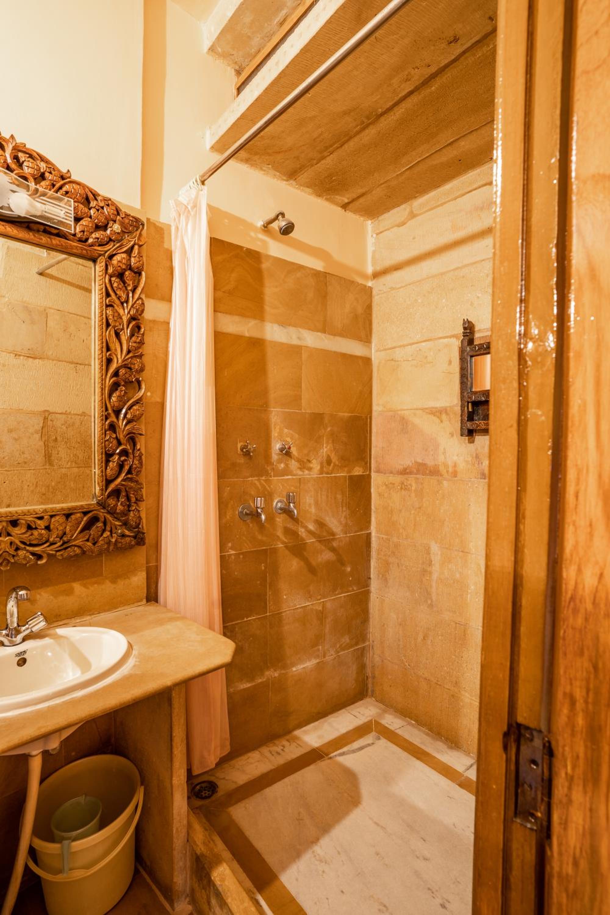 Hotel Garh Jaisal Haveli, just a stone's throw away from Jaisalmer's top attractions, offers elegantly designed air-conditioned rooms with balconies overlooking the city and landmarks. The rooms boast modern amenities like free WiFi, comfortable seating areas, and spacious work desks, ensuring a relaxing stay for guests. The attached bathrooms are stocked with complimentary toiletries, slippers, and showers for added convenience.