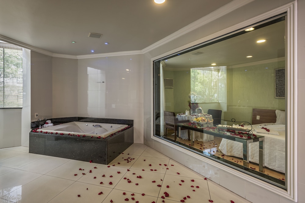 Chegamos no local nós levamos para o quarto errado falei que não era o que eu comprei me levaram novamente pro quarto errado , a banheira em péssimo estado o lençol cheio de marcas de queimado sujeira a banheira tinha cabelo dentro , e para redimir ao meu prejuízo me mandaram um prato de feijoada . Paguei 210 reais em um quarto de 150 reais , um absurdo como fazem com os hóspedes não tem controle nenhuma quando fui fazer chekin me compraram outro valor sendo que já tinha pago . Péssimo não recomendo
