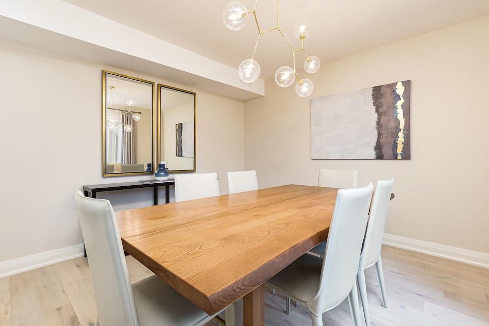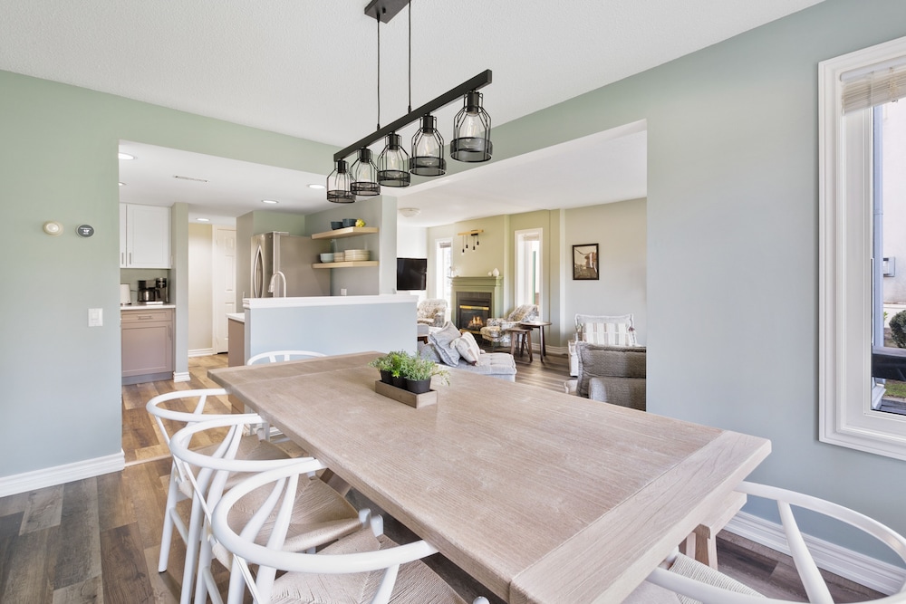 Lacked regular maintenance and cleaning. :-( Fireplace and back outdoor light did not work. Maintenance unable to fix fireplace. Light at back door worked off and on. Cobwebs everywhere. Mold in bathrooms. Bedlinens thin to the point of ripping. Construction equipment in visitor parking. Towel rack in main floor bathroom coming away from the wall, curtain rod in livingroom bent, cushions fraying, BBQ cover on the ground, 4 square chairs/sleeping ??? in the livingroom not appropriate. Suggest replacing with pullout couch. Décor was nice and lots of room at front entrance. Everything you need in the kitchen. Dining area was great!