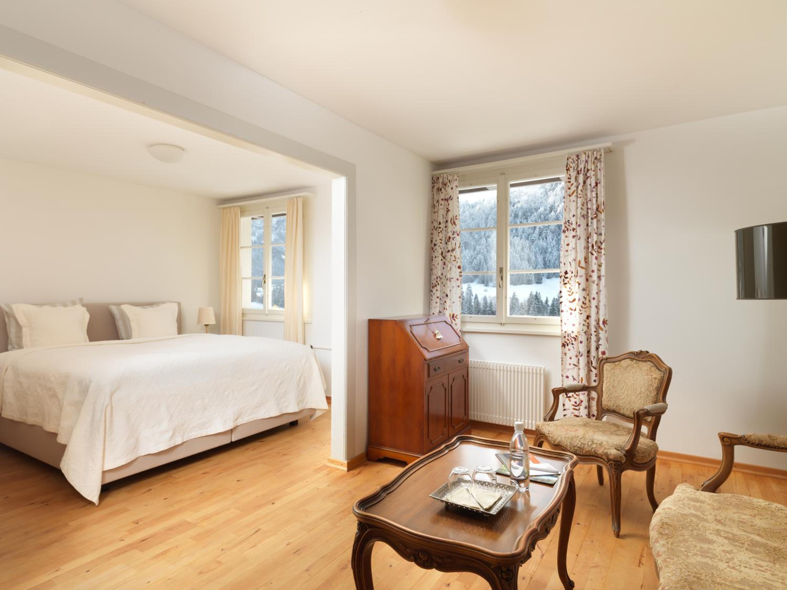Savor Swiss Delights: Indulge in traditional Swiss cuisine and seasonal specialties at our restaurant, complemented by fine wines and fresh mountain spring water.
