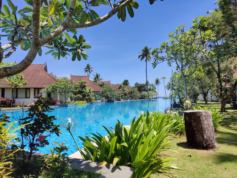 Very comfortable and beautiful location with lovely character. Beautiful architectural details on the cottages Excellent cooking and choices in several local styles as well as Western available. Very long, well maintained swimming pool rimmed with palms, flowers and lake views. Boat rides for guests included.