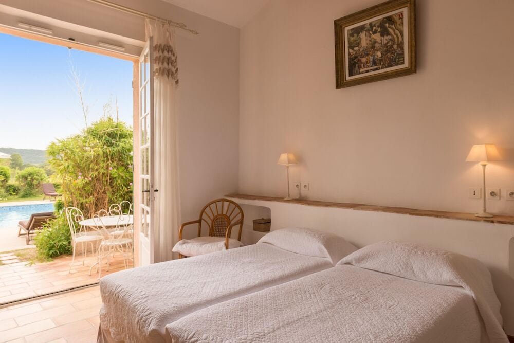 Pulling into the driveway, you can already tell the quaintness of this hotel. The suite we had was like a small villa and the bathroom was huge with both a very large shower and a separate tub and 2 sinks. The toilet and bidet were separate in another room (great for couples who can get ready at the same time). We had a garden view of the neighboring vineyard and a little patio, semi-private. The pool was really nice with sun loungers and umbrellas and towels are available. The breakfast was included but was enough with some croissants, bread, jams, fresh fruits, juice, tea or coffee. The staff was really nice. It's close to Tahiti beach of Pampelonne beach, about a 5 minutes drive. We would definitely come back here to stay again!