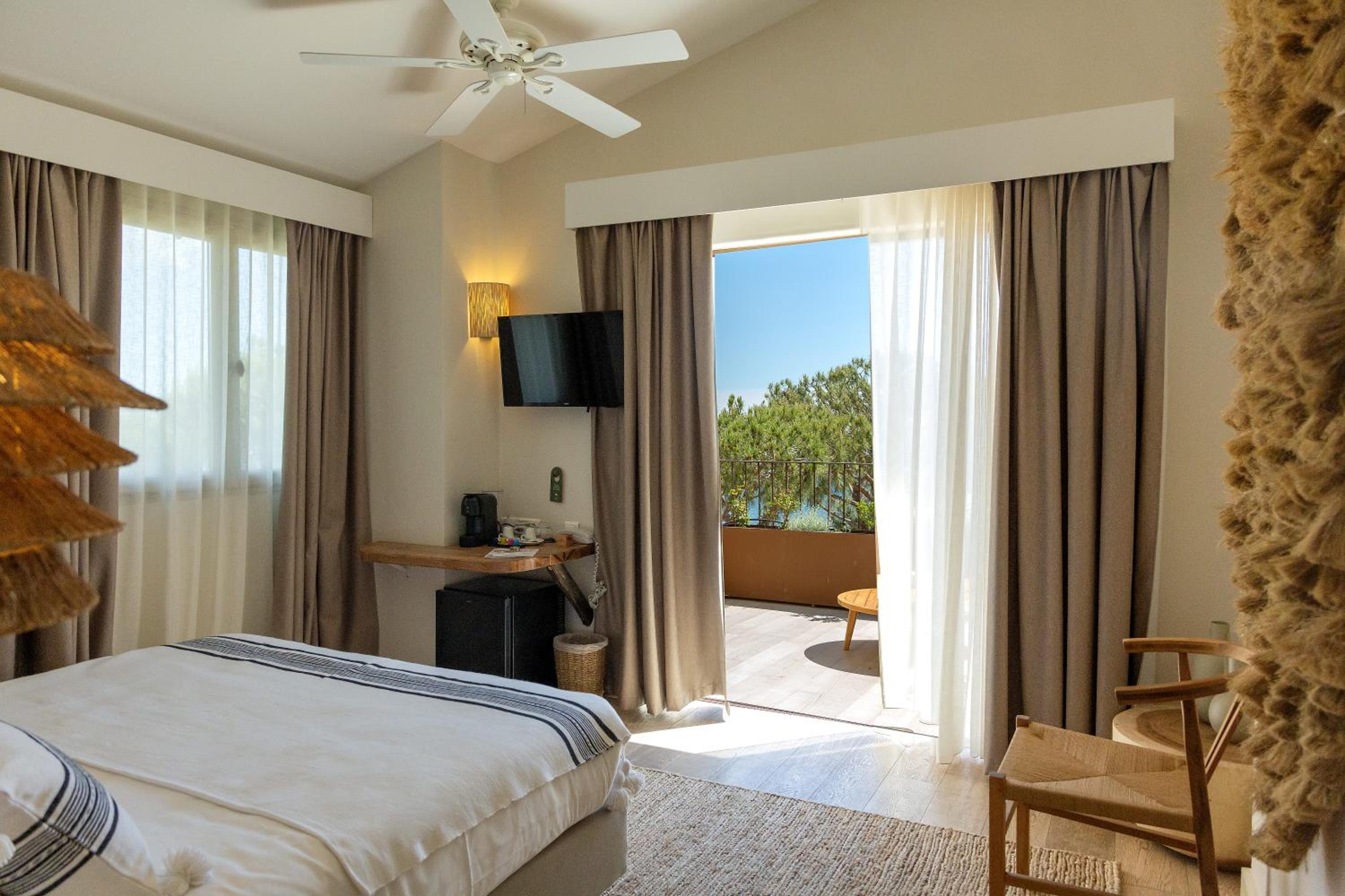Indulge in our quiet and comfortable rooms equipped with all modern conveniences. Wake up to stunning bay views from your room's terrace.