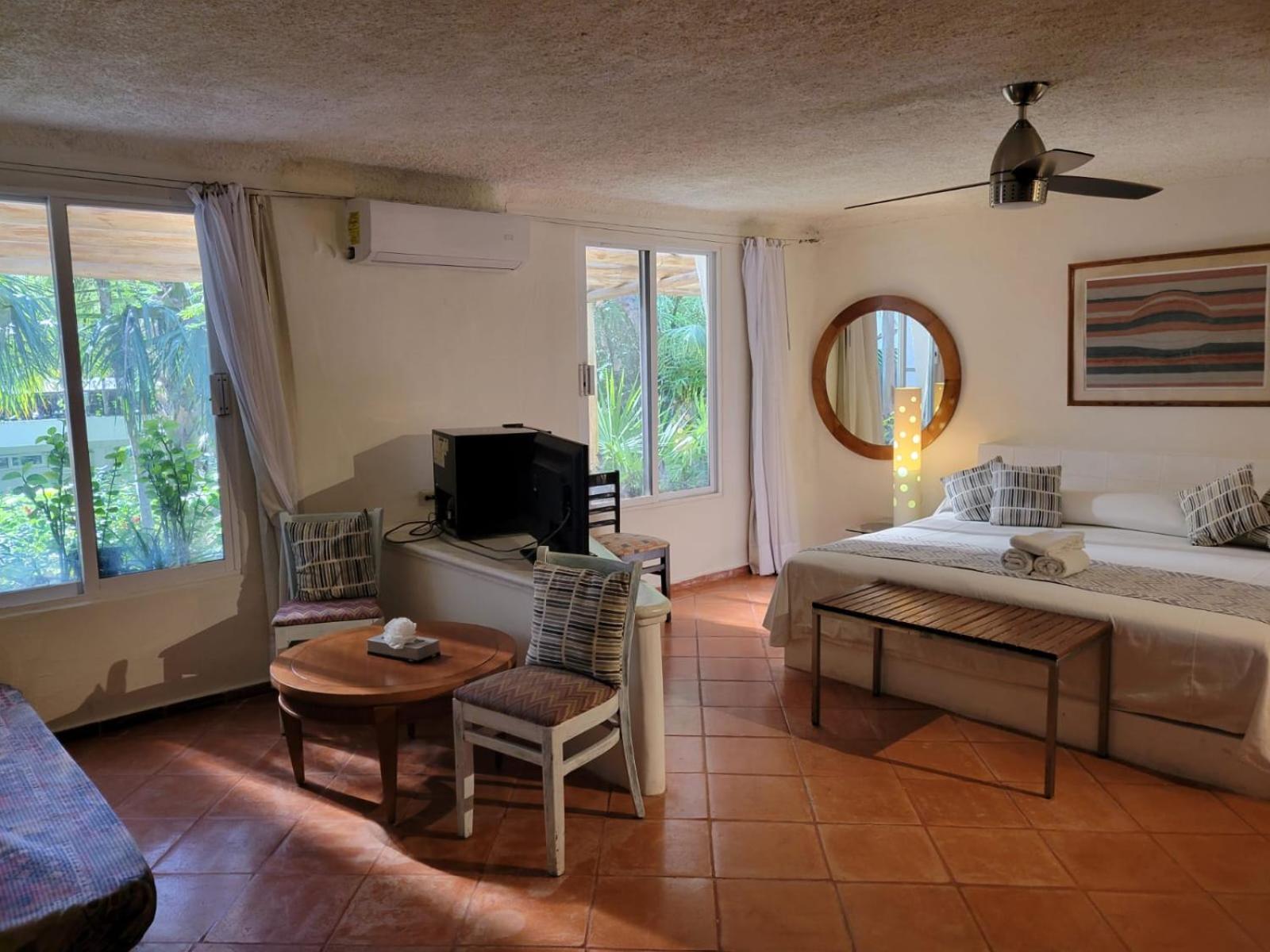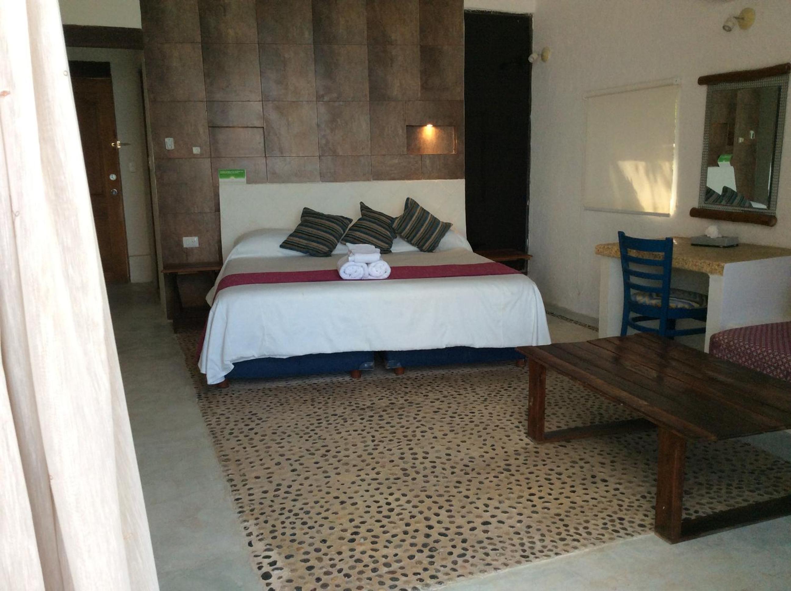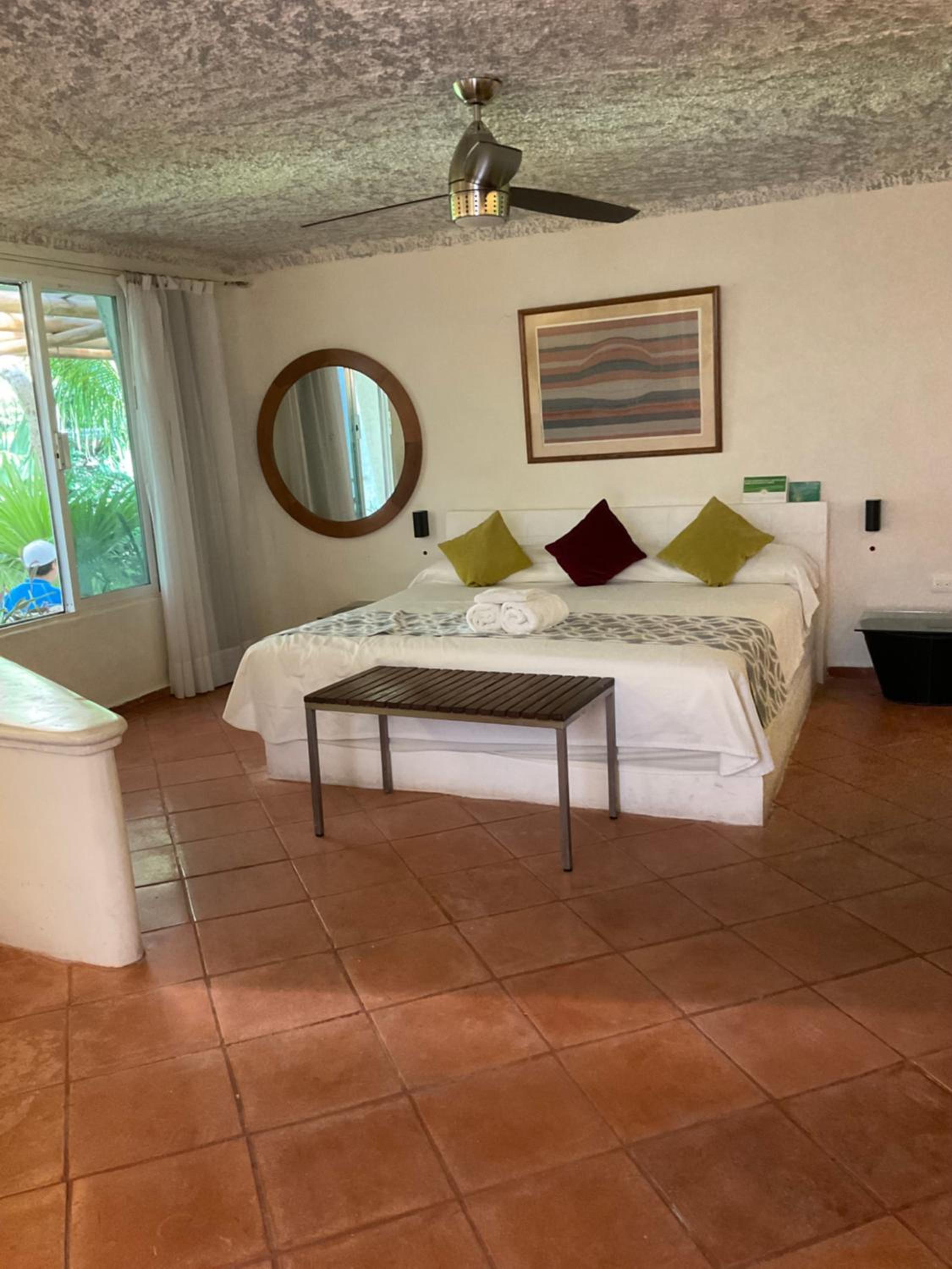 The property has a garden feel. Unfortunately our room didn’t have much privacy, as you’d see everyone who walked by if the blinds were open. The room was spacious and had mini fridge which was nice. Obviously we’re in Mexico and these things happen given the climate and surrounding but it was unsettling paired with the droppings behind our bed. These things could’ve easily been prevented with a more thorough deep cleaning.