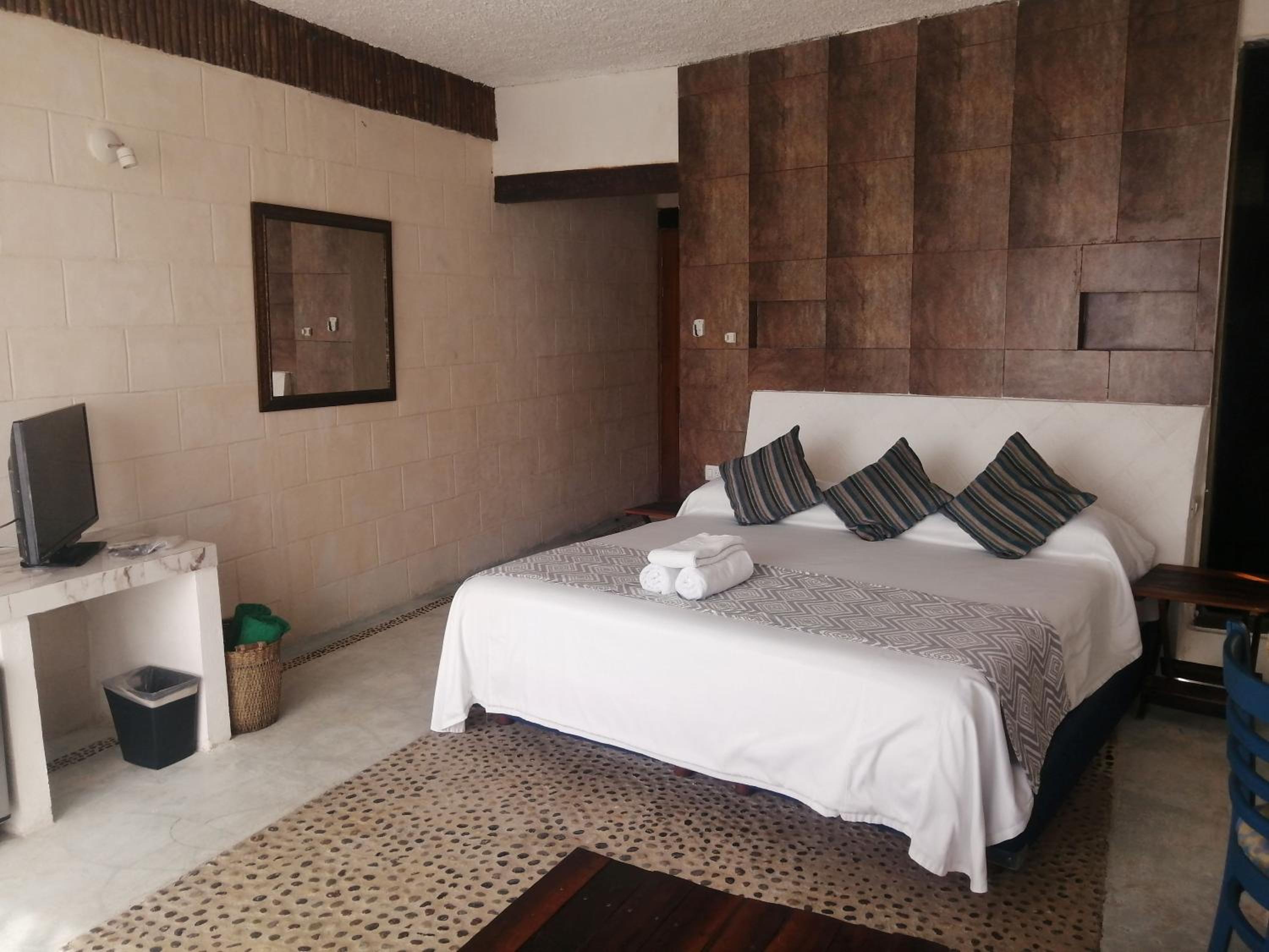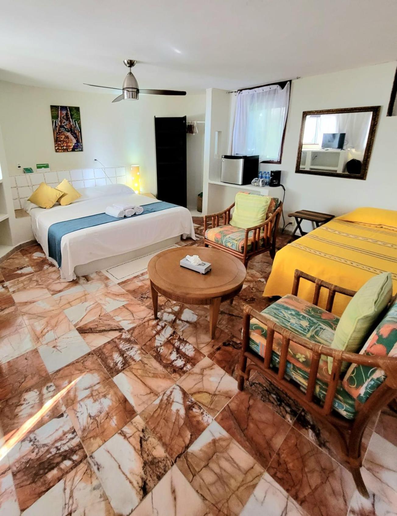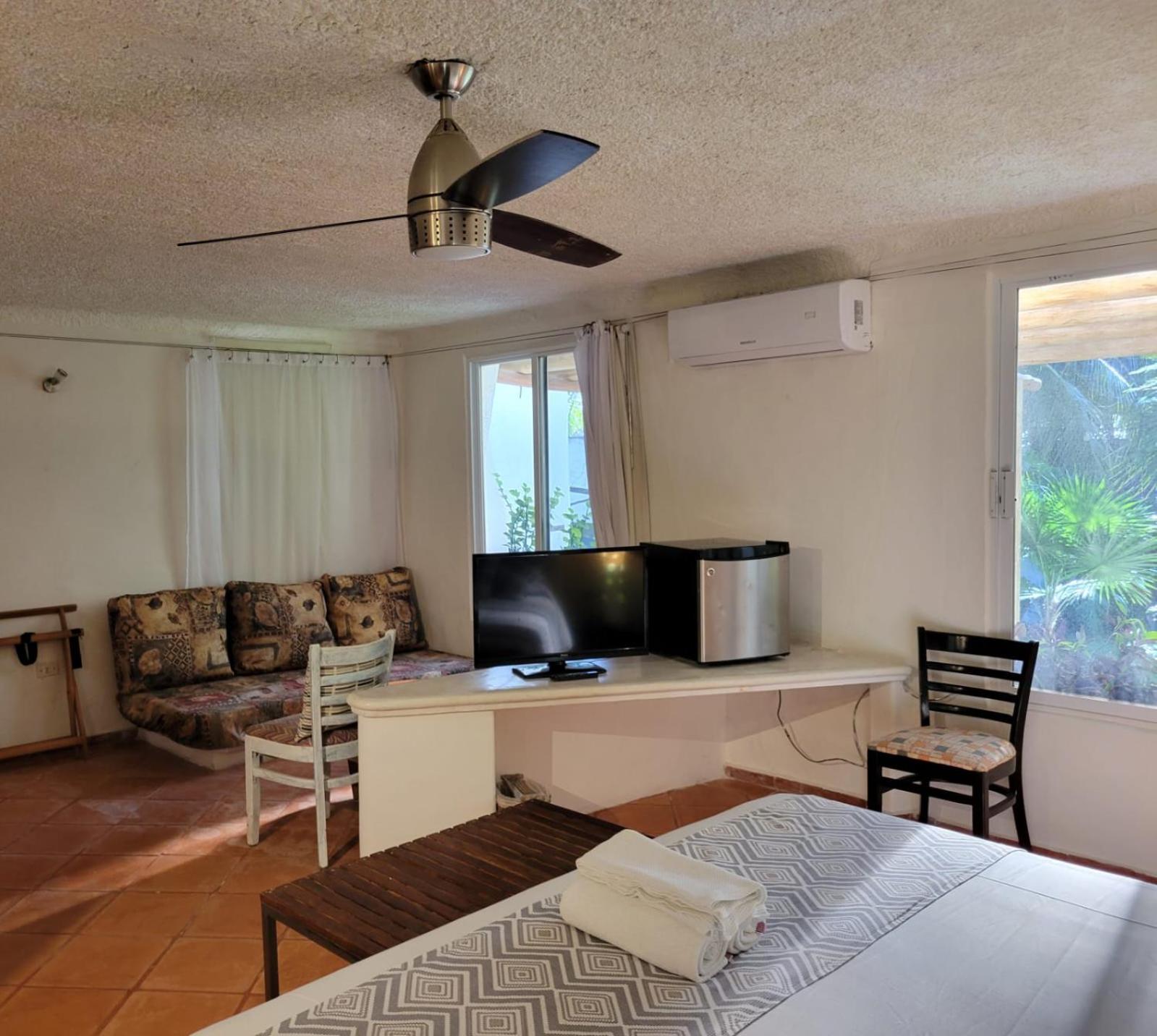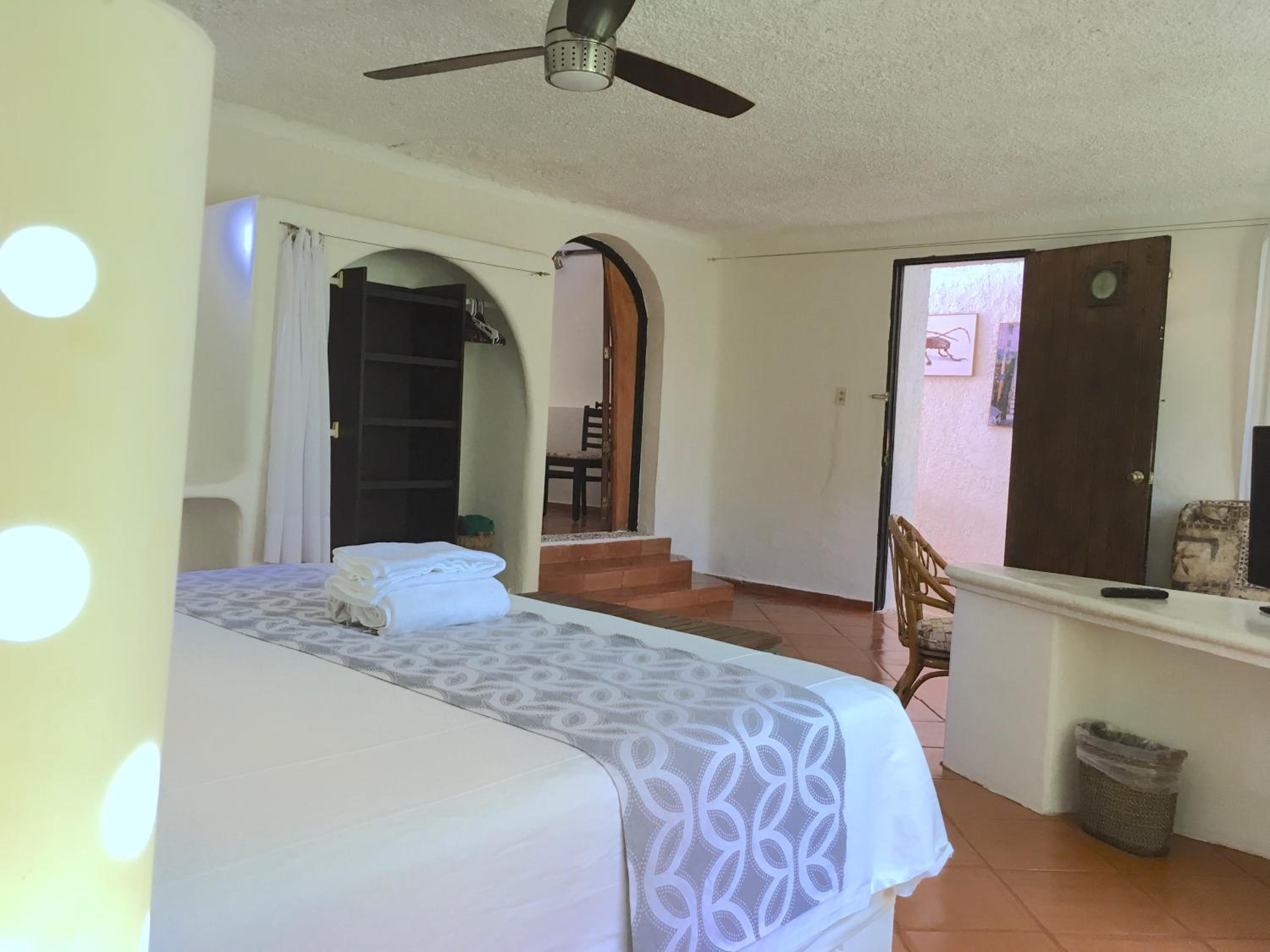 The property has a garden feel. Unfortunately our room didn’t have much privacy, as you’d see everyone who walked by if the blinds were open. The room was spacious and had mini fridge which was nice. Obviously we’re in Mexico and these things happen given the climate and surrounding but it was unsettling paired with the droppings behind our bed. These things could’ve easily been prevented with a more thorough deep cleaning.