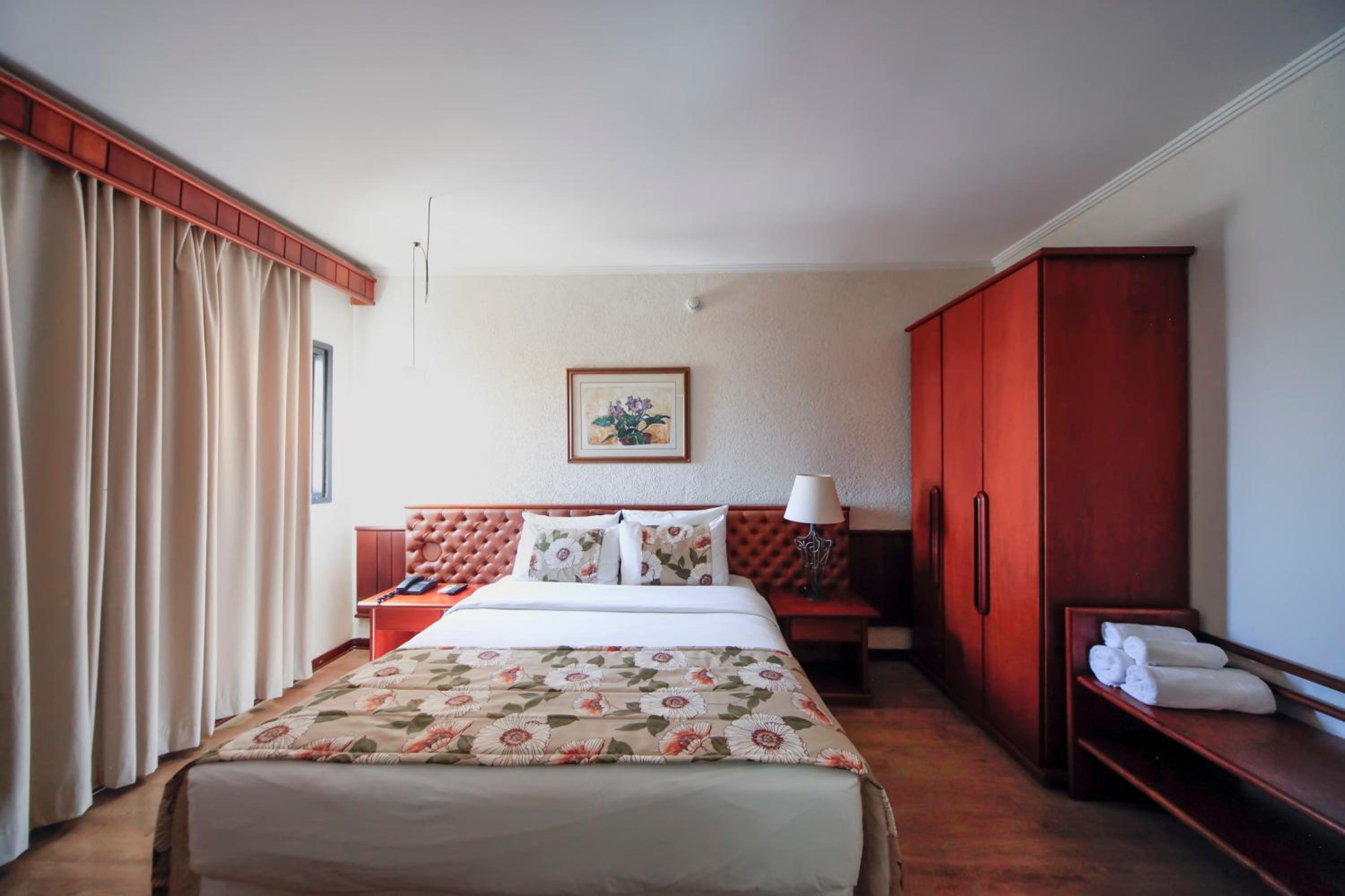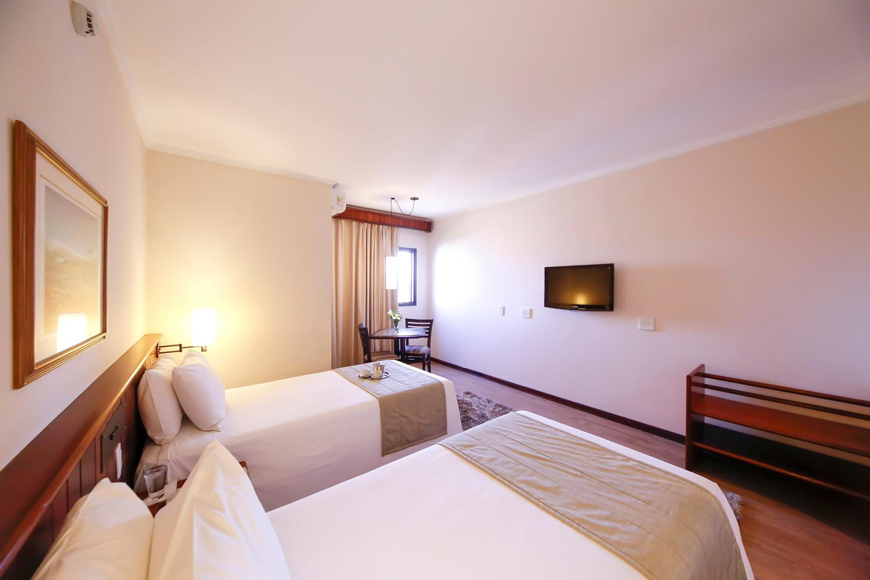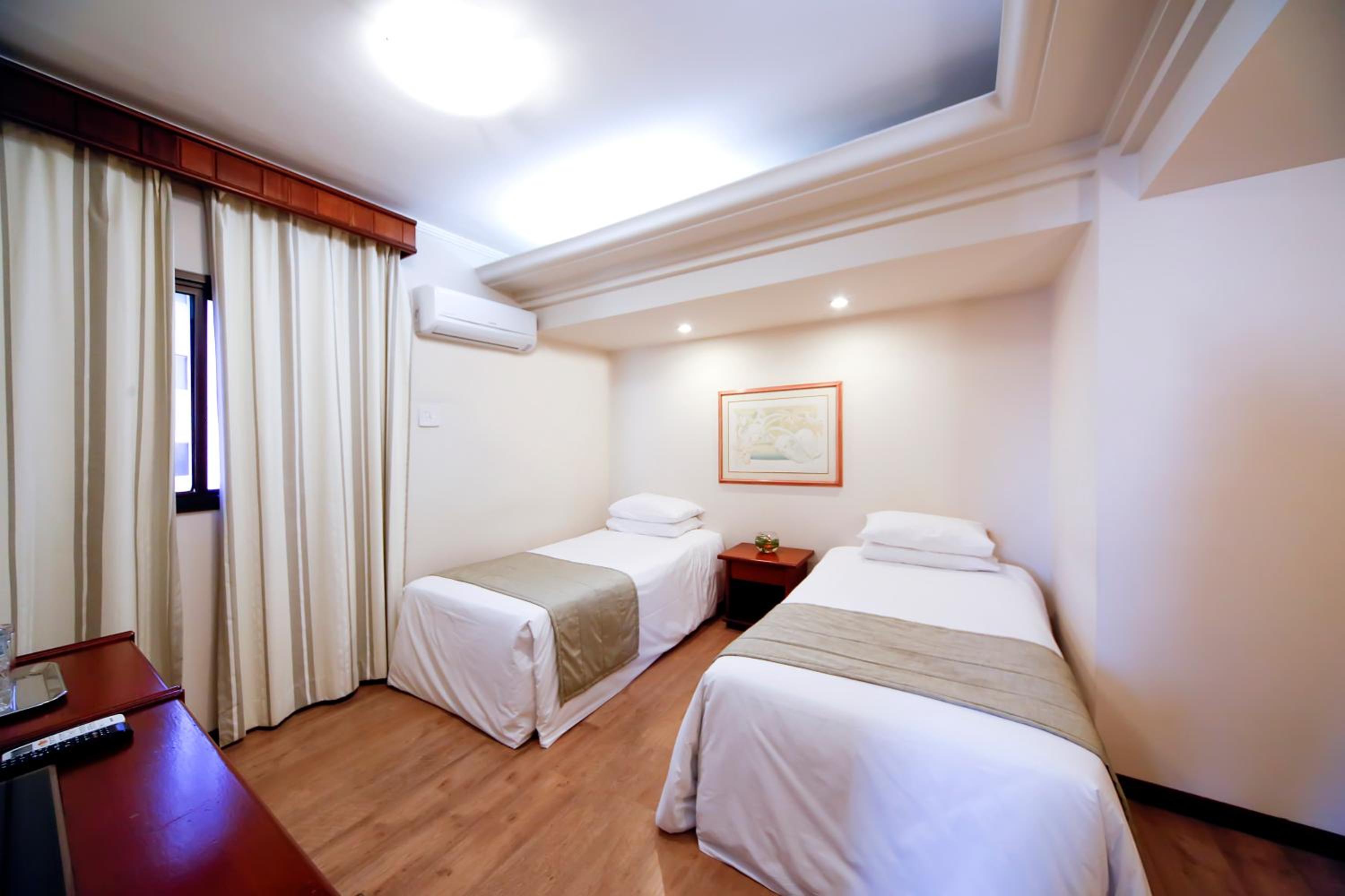 Experience comfort and convenience in every room at Sorocaba Park Hotel. From air conditioning to free WiFi, each room is equipped with modern facilities to ensure a pleasant stay. The neutral carpeted floors and colorful bedding add a touch of style to the accommodation.