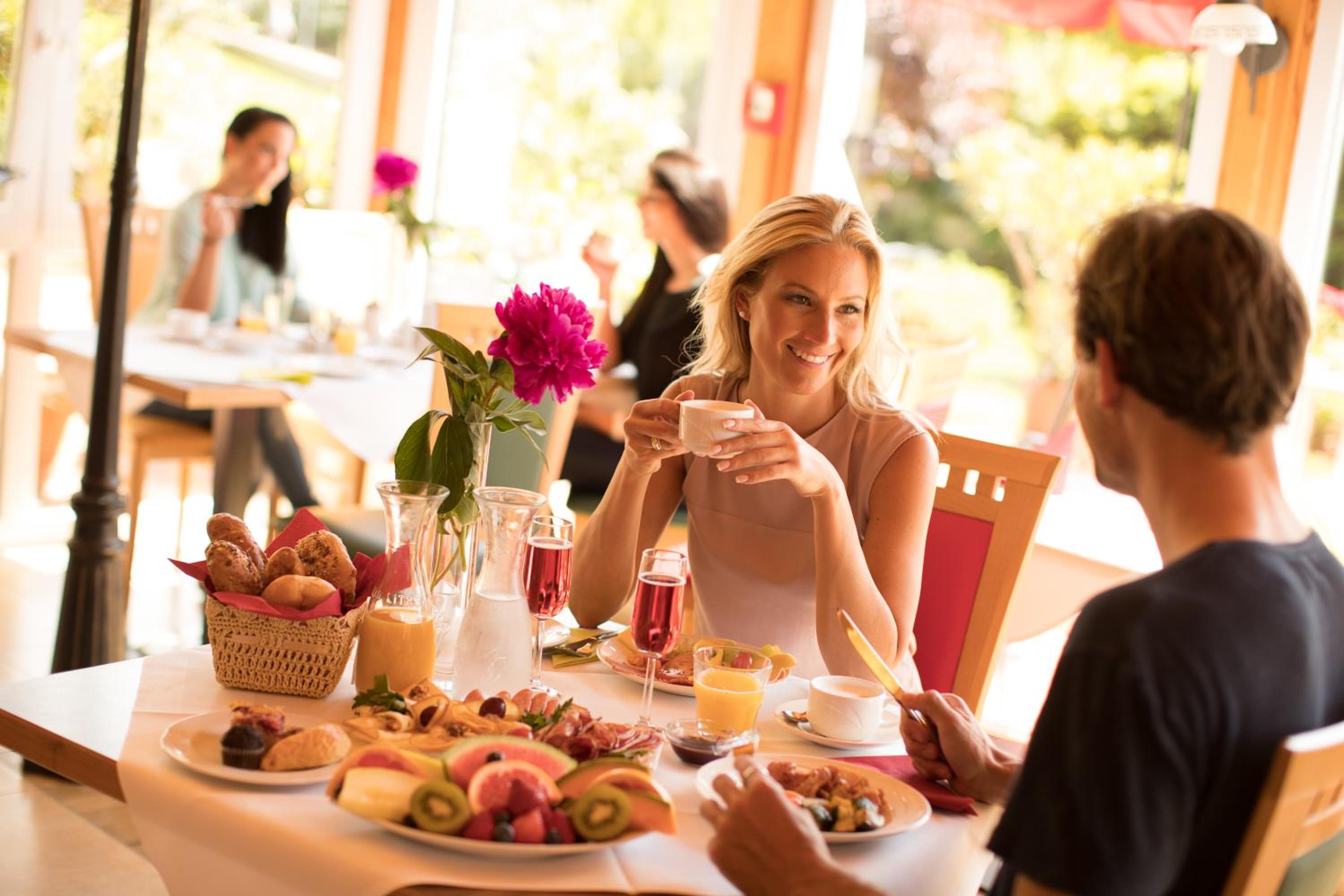 Enjoy a diverse breakfast buffet with healthy, regional, and organic choices, including vegetarian and vegan dishes. Dine at the on-site restaurant or nearby establishments with the half-board arrangement, offering a culinary experience within a 7 km radius.