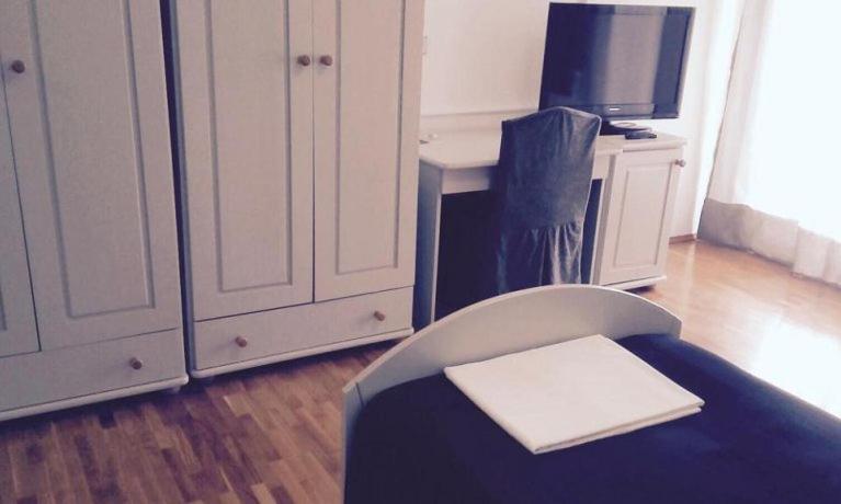 Each en-suite room at the Vienna Hotel features a balcony, flat-screen cable TV, light wooden furniture, and hardwood floors for a cozy stay.