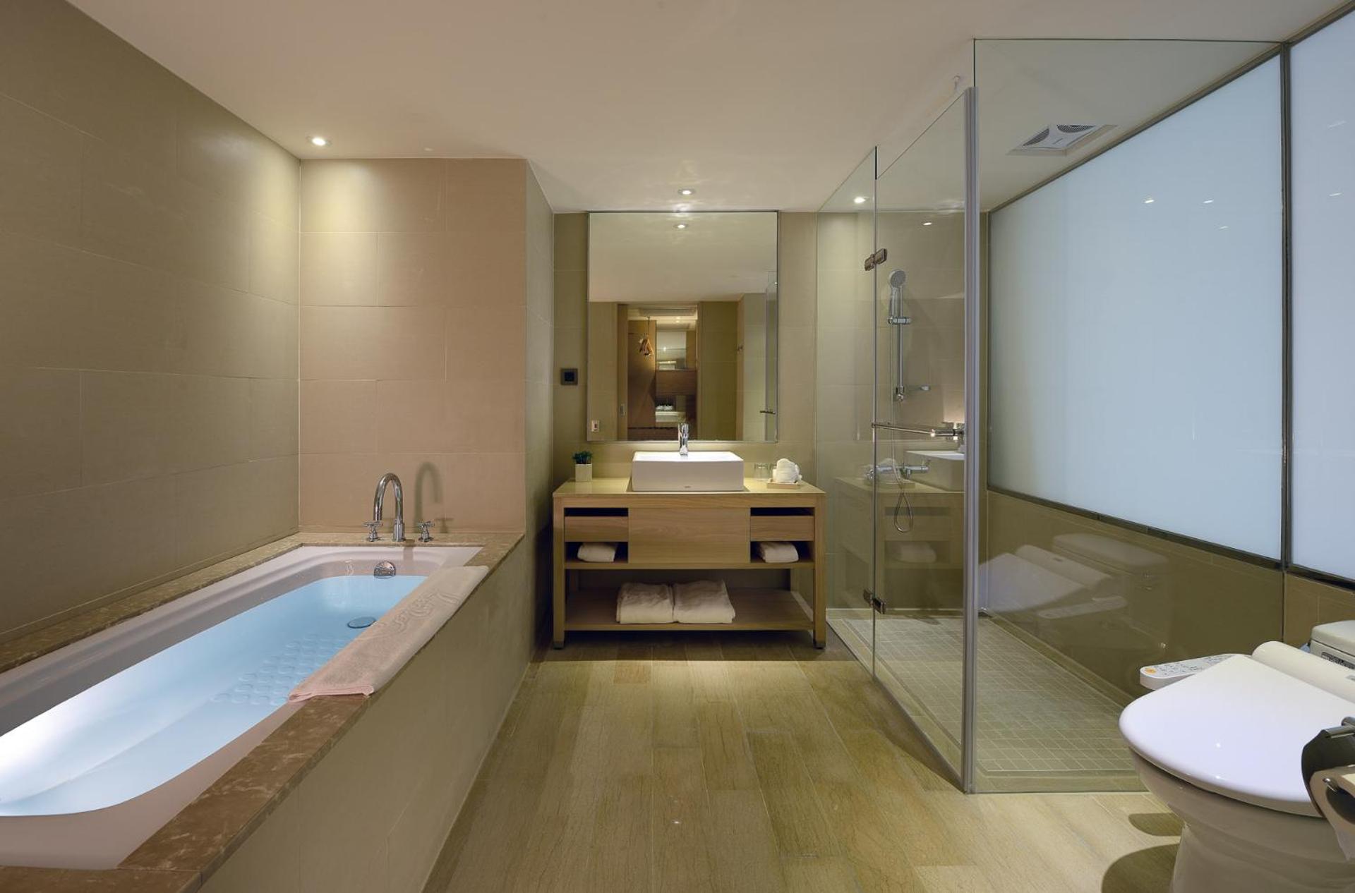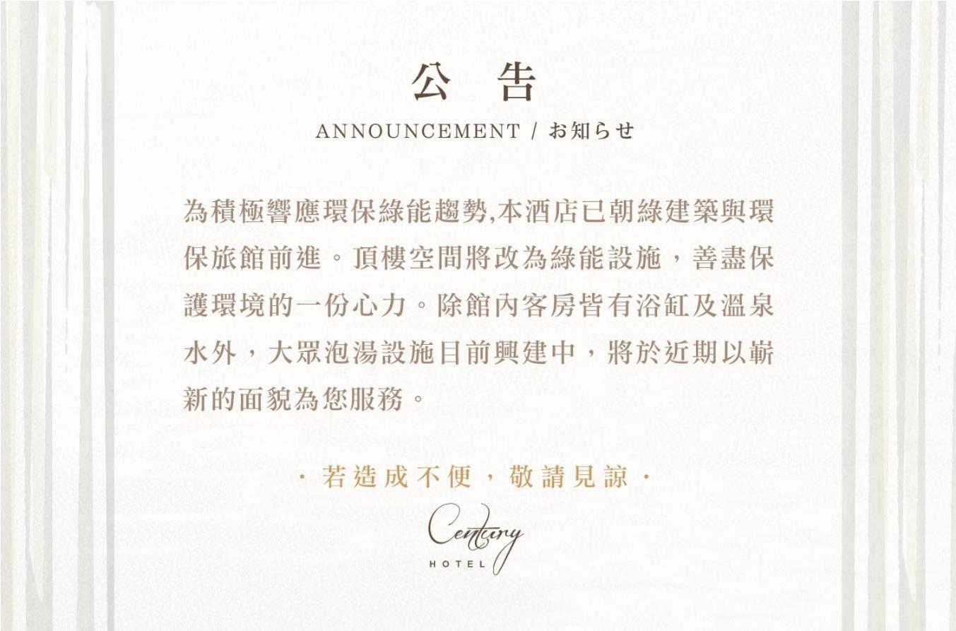 The nude bath area service is suspended due to renovation. The hot water in the guest rooms is all hot spring water and single bathtub is provided for bathing (only suites are marble baths). Currently provide bathing in Toyuji Hot Spring Resort, and the additional fee is TWD250 per person, guest needs to bring your own swimwear and swimming cap.Please inform of your expected arrival time in advance. You can use the Special Requests box when booking, or contact the property directly using the contact details in your confirmation.