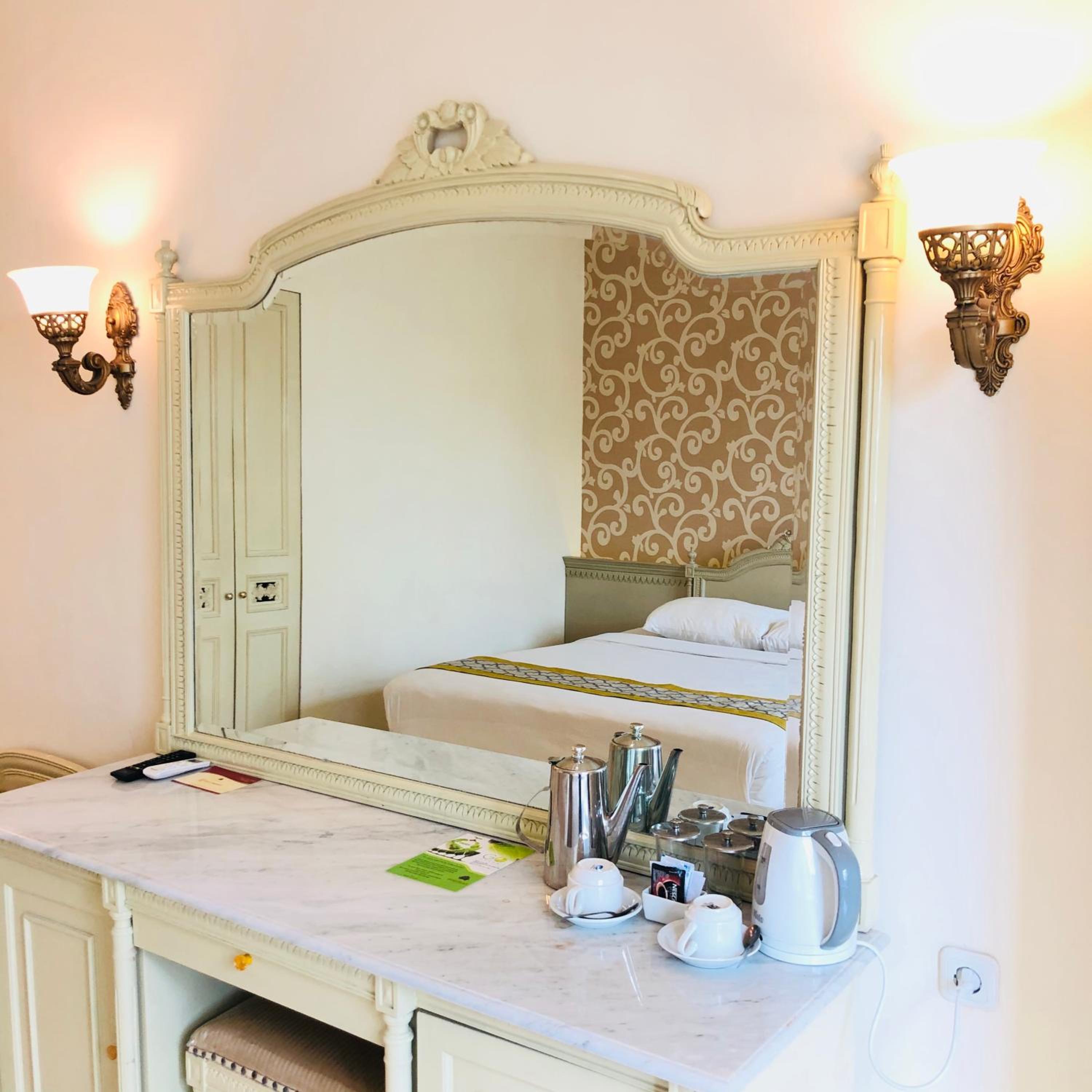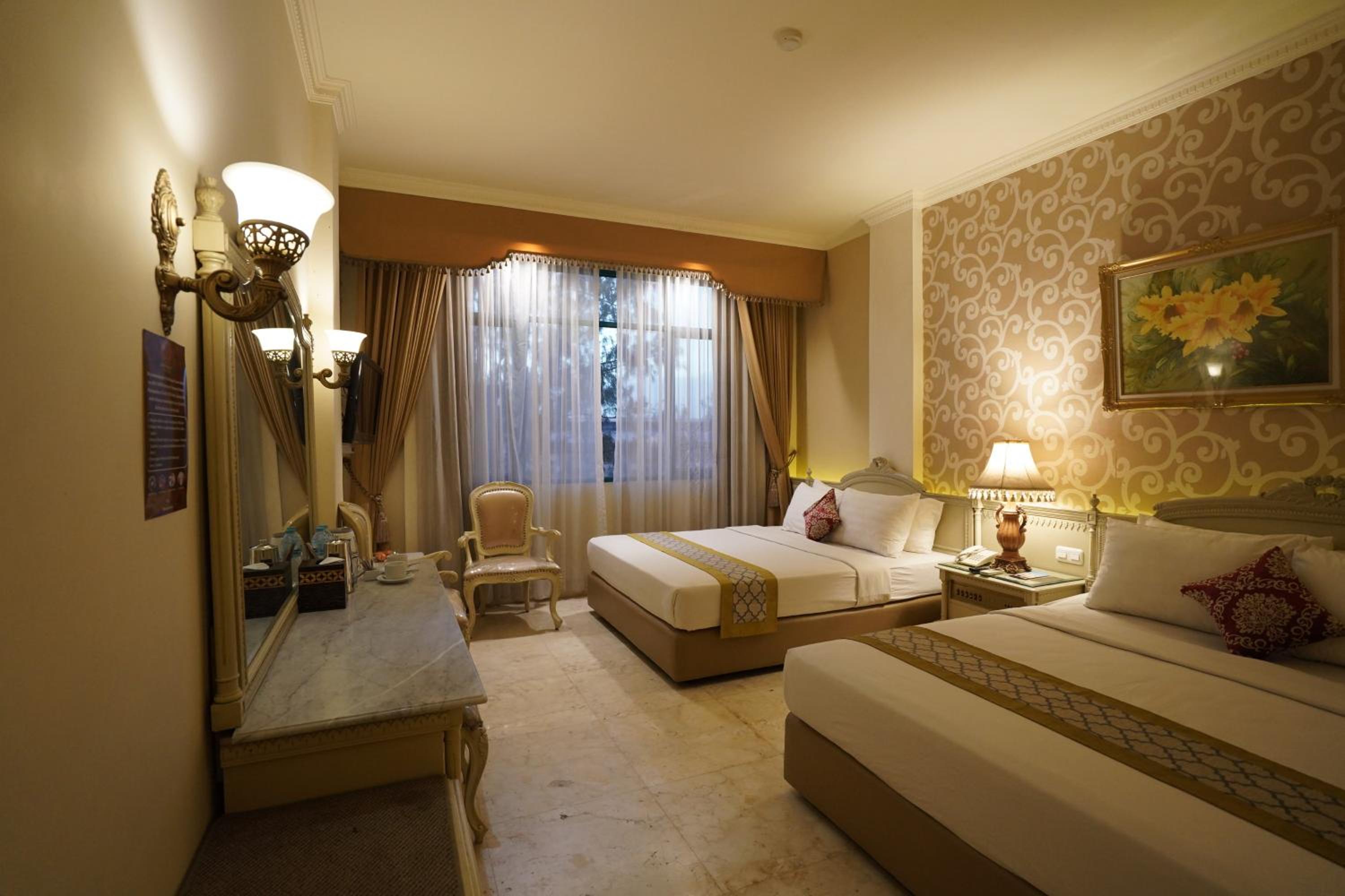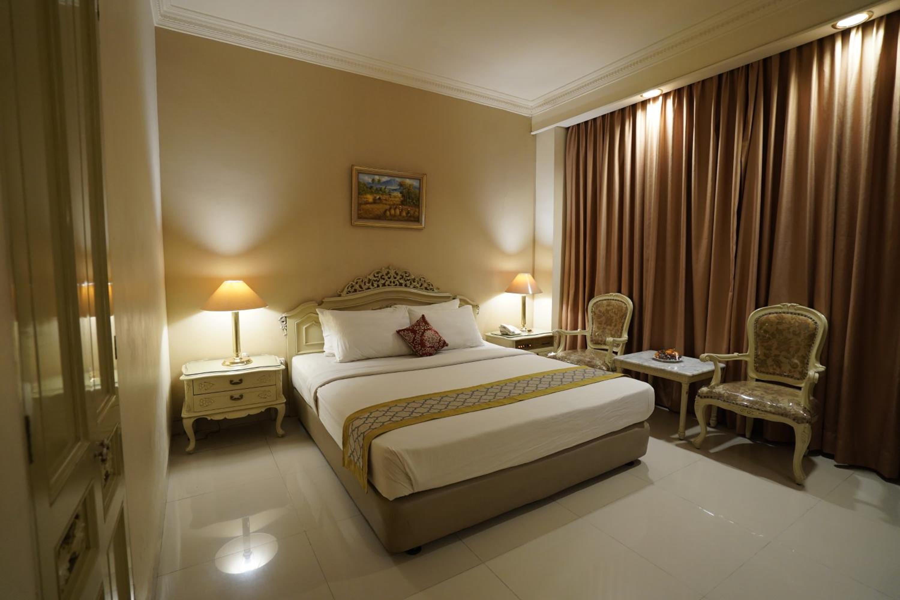 Classic Elegance: Step into Hotel Indah Palace Solo and immerse yourself in the charm of cream-coloured European-style furnishings in our air-conditioned rooms, equipped with modern amenities for your comfort.