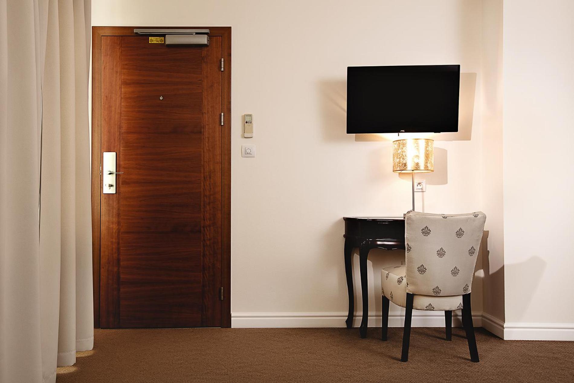Couette une place pour chacun, plutôt petite quand on nous donne un kingsize. Pour un 5 étoiles on s’attend à avoir une belle/grande télé , n’attendez vous pas à que cela soit le cas. Première chambre mini télé posé sur un vieux meuble télé, deuxième chambre accroché au mur plus correct. On nous propose netflix mais si pas de compte on peut seulement regarder les chaînes tchèques, dommage si l’ont veut se détendre à l’hôtel.
